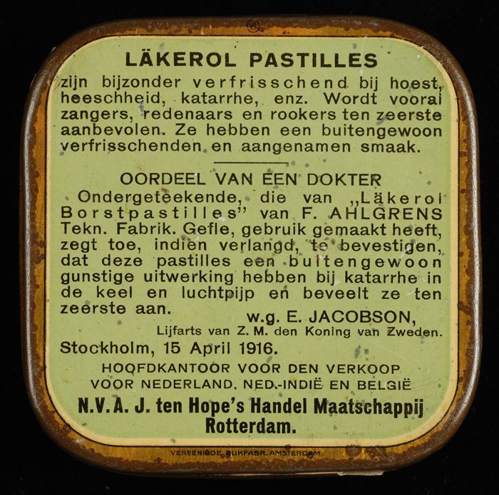 Blik met los deksel, "Läkerol Borst Pastilles", olij...