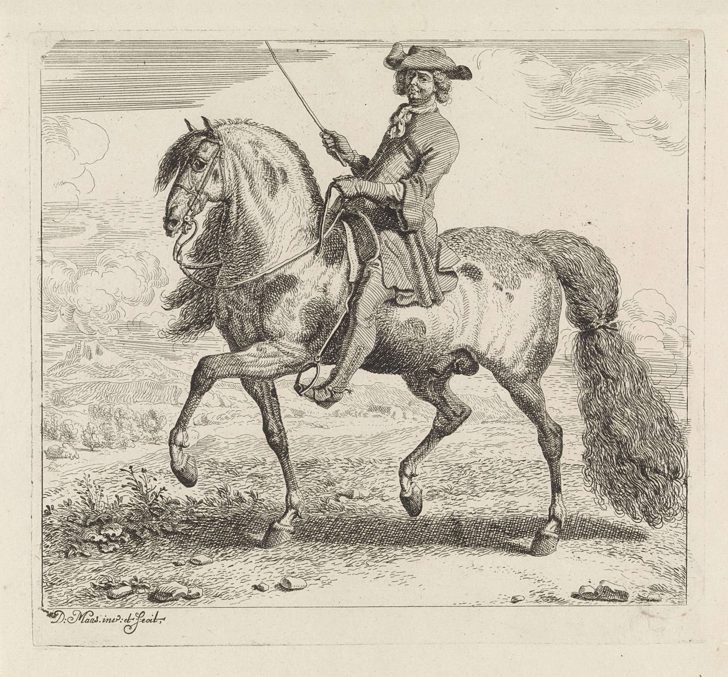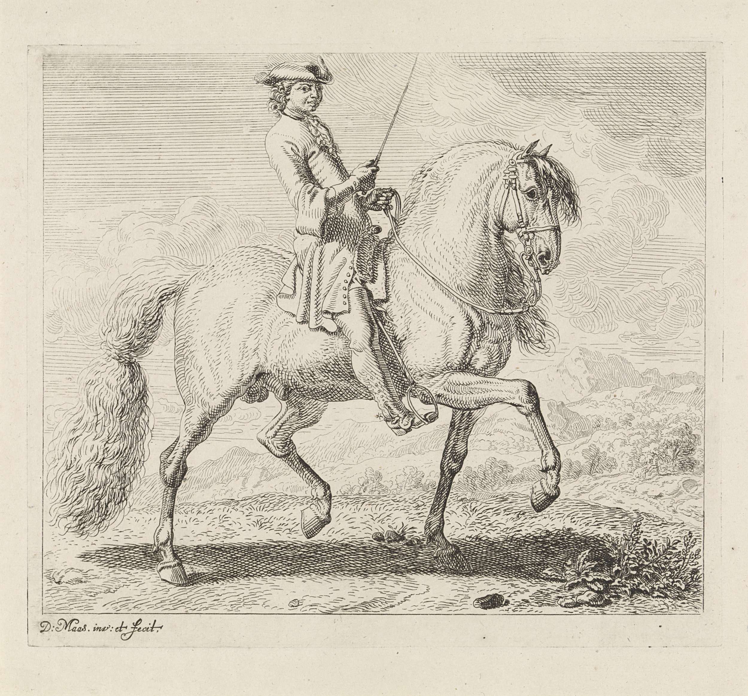 Ruiter met een steigerend paard naar rechts