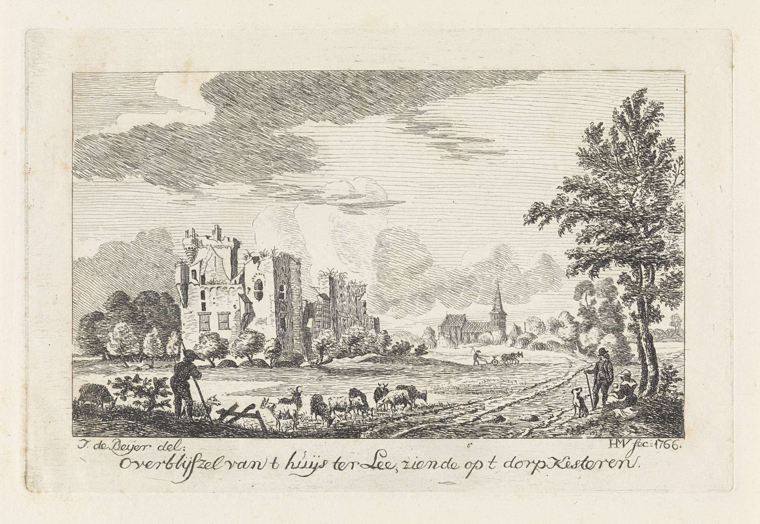 Gezicht op de ruïne van het huis ter Lede, Kesteren