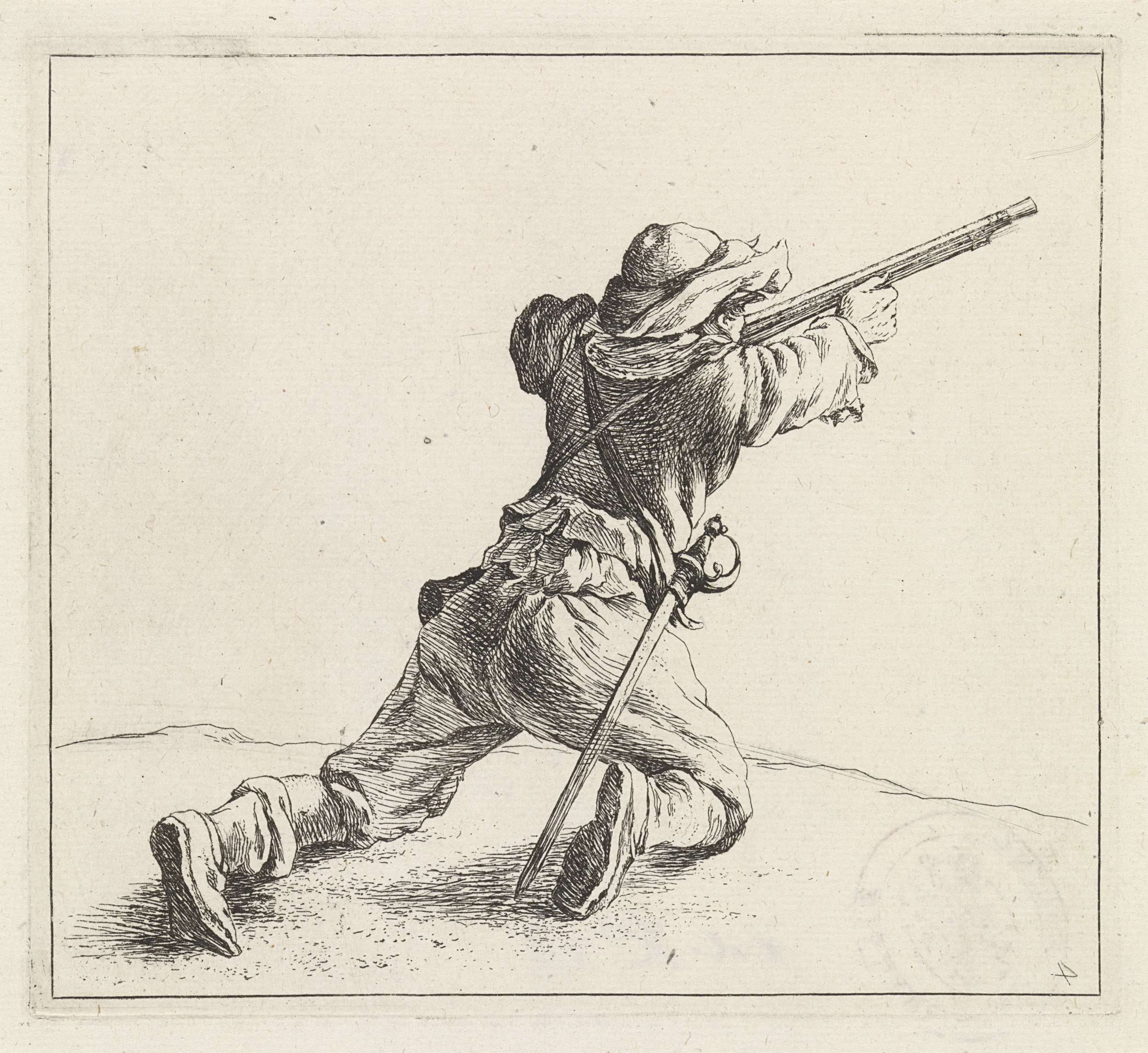 Geknielde soldaat, zijn geweer aanleggende