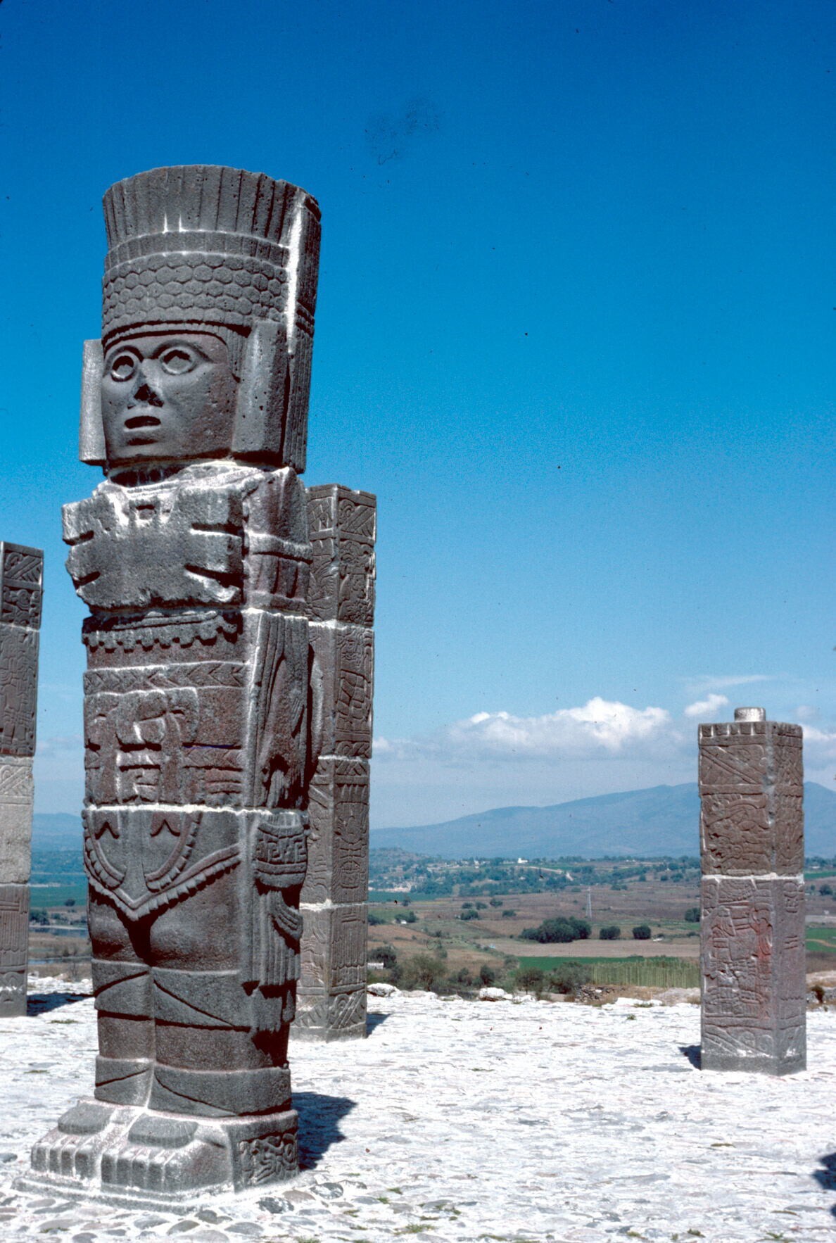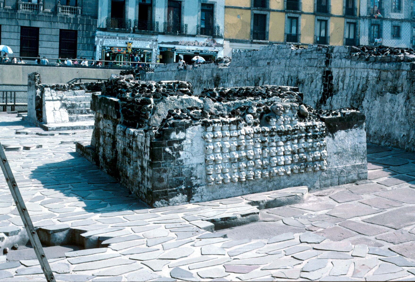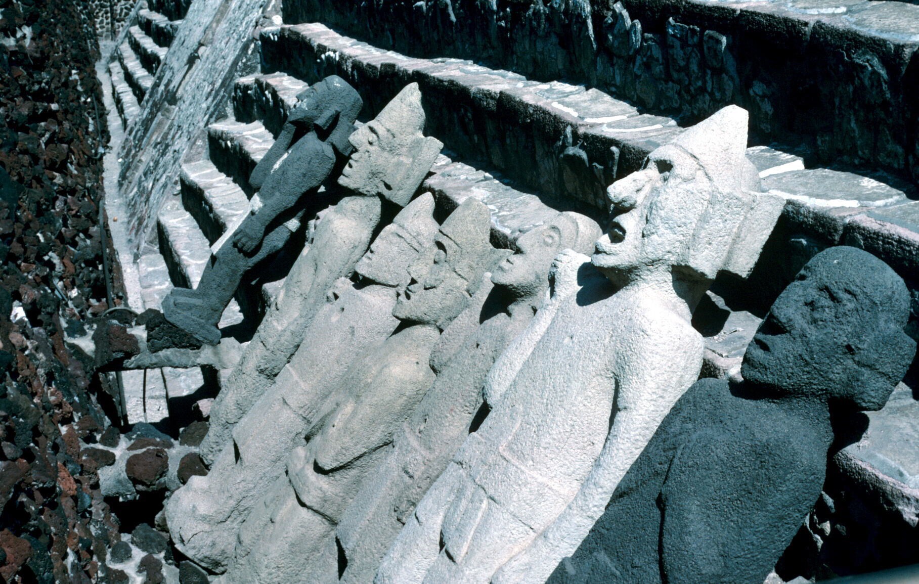 stenen vaandeldragers bij opgraving Templo Mayor