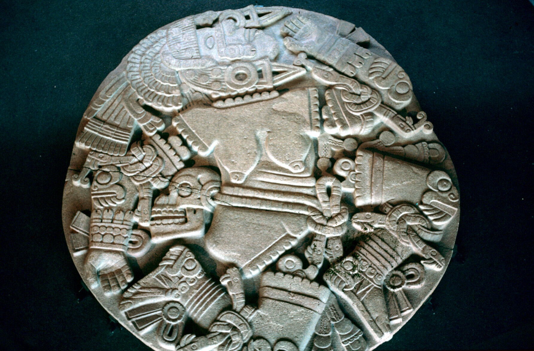 reliëf van de maangodin Coyolxauhqui in museo Nacion...