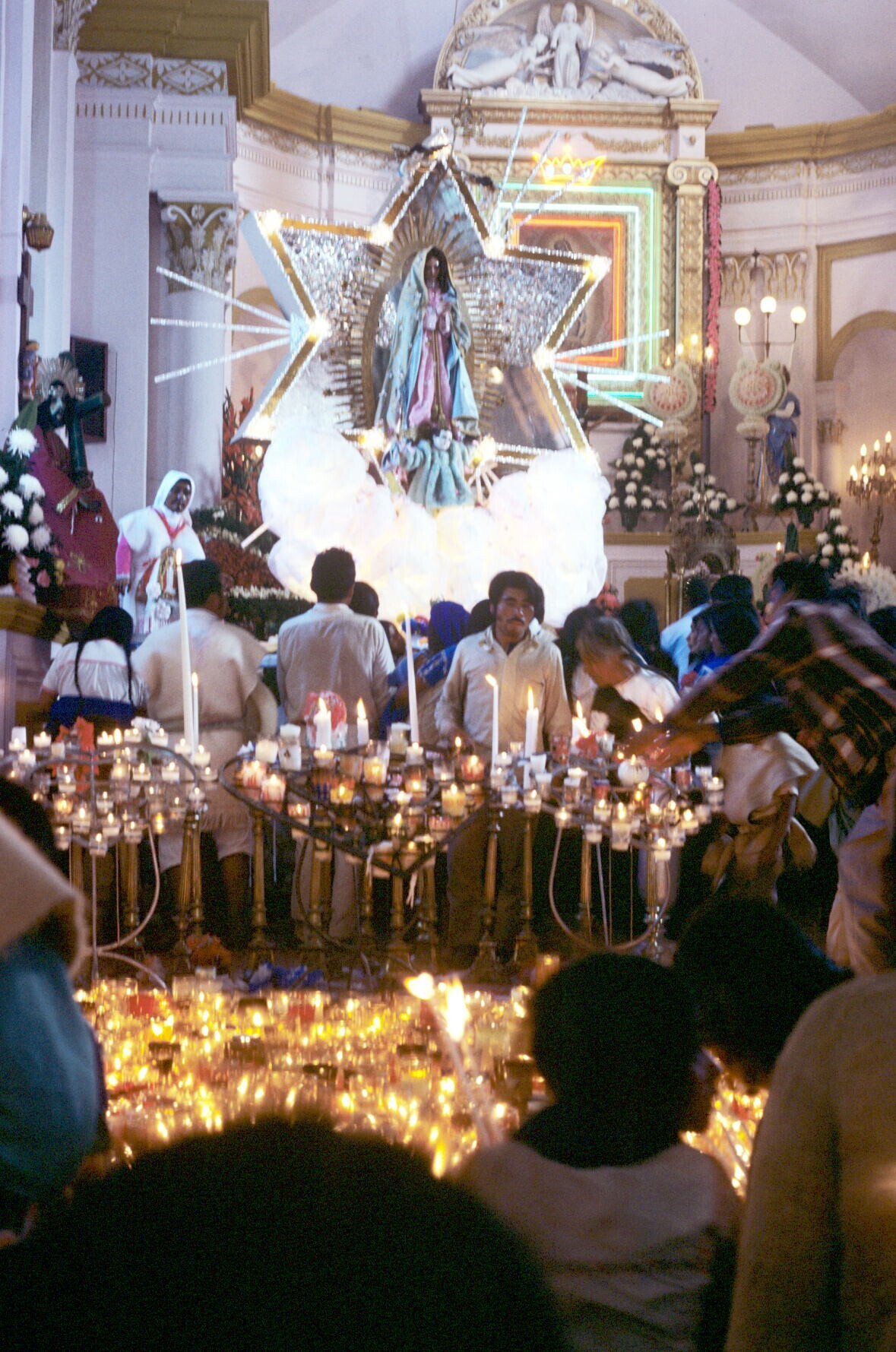 aanbidding Maagd van Guadalupe in kerk