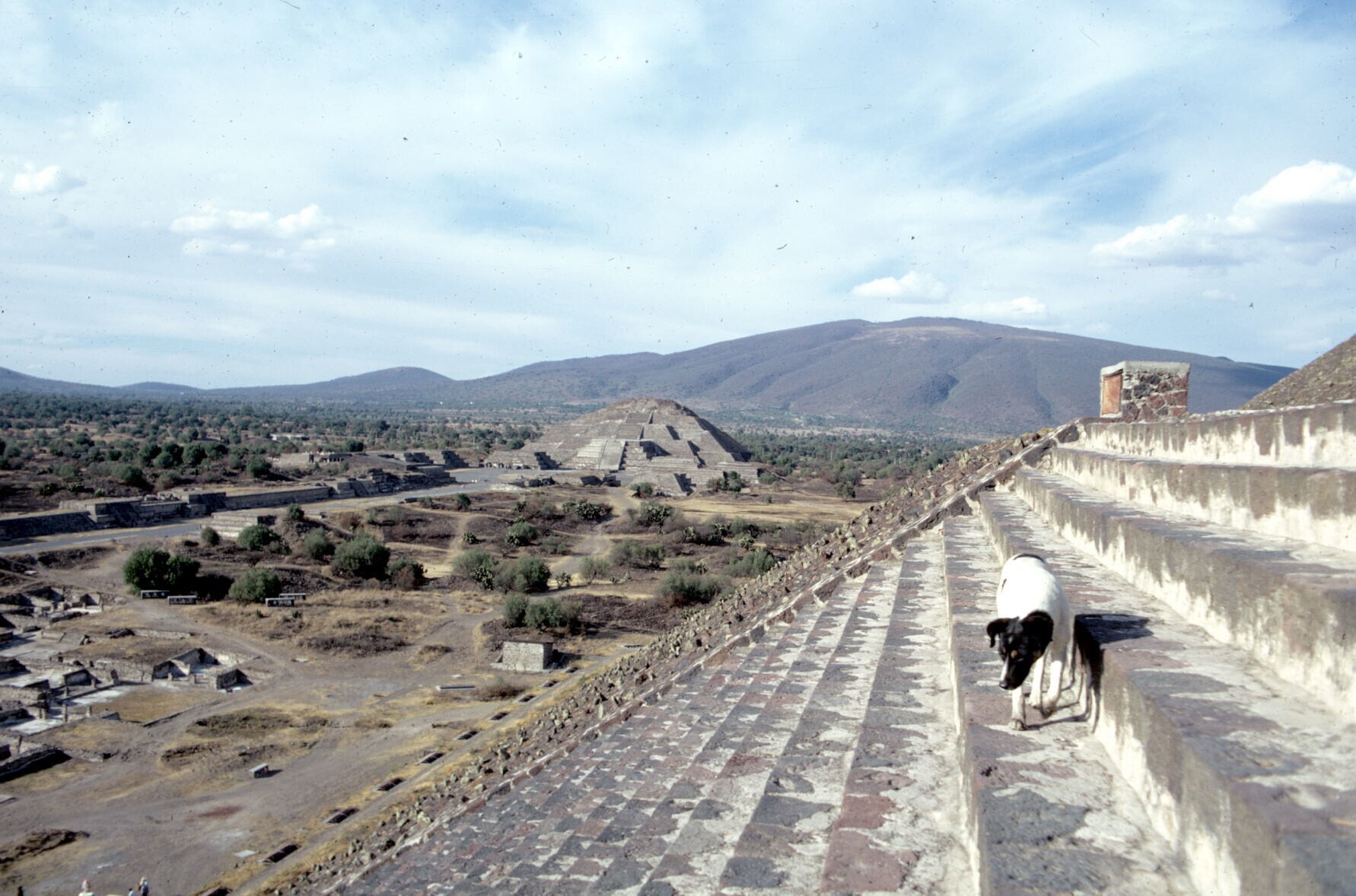 gezicht vanaf pyramide van de Zon (met hond) op pyra...