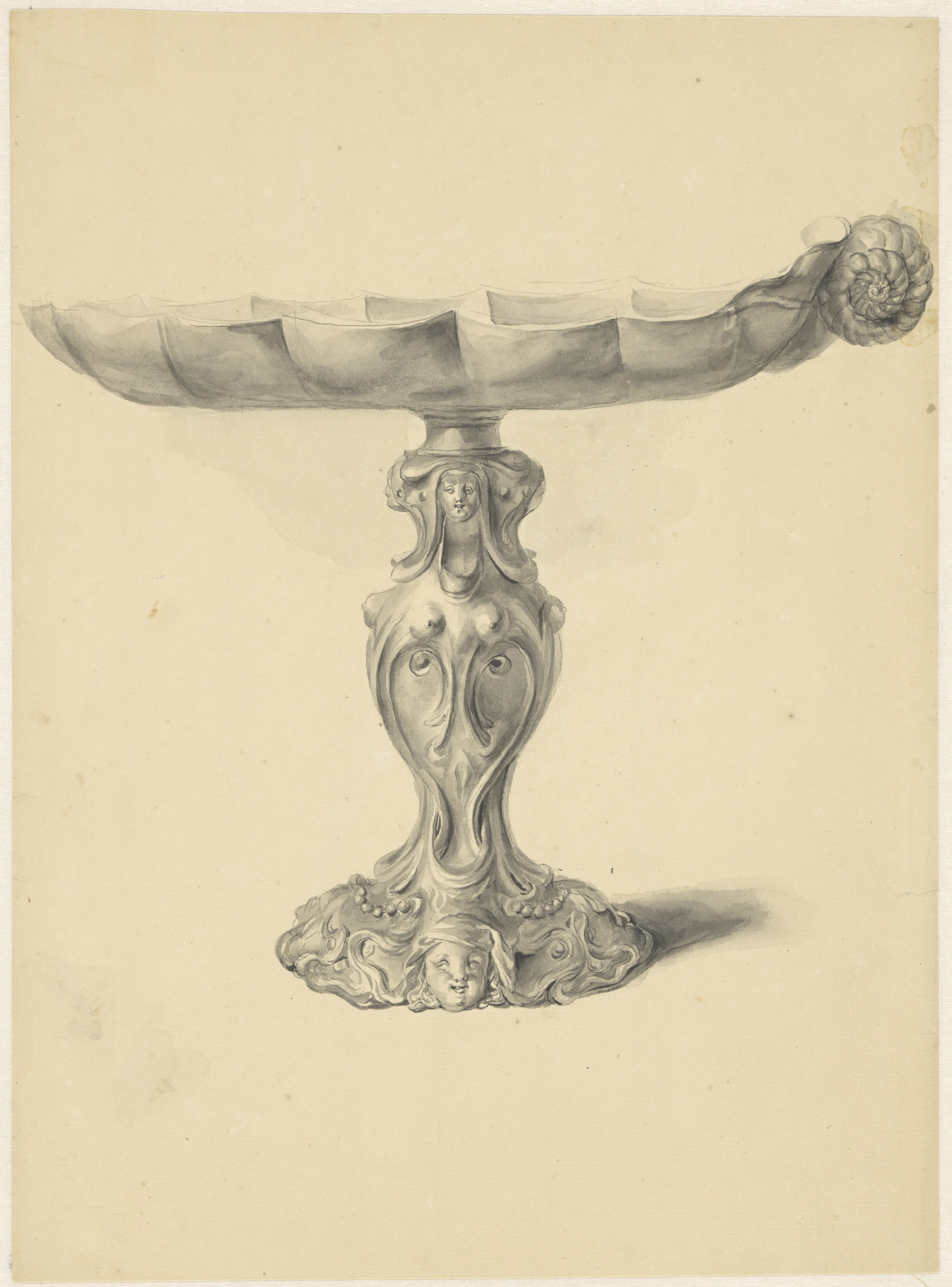 Ontwerp voor de verguld bronzen montuur van een pors...