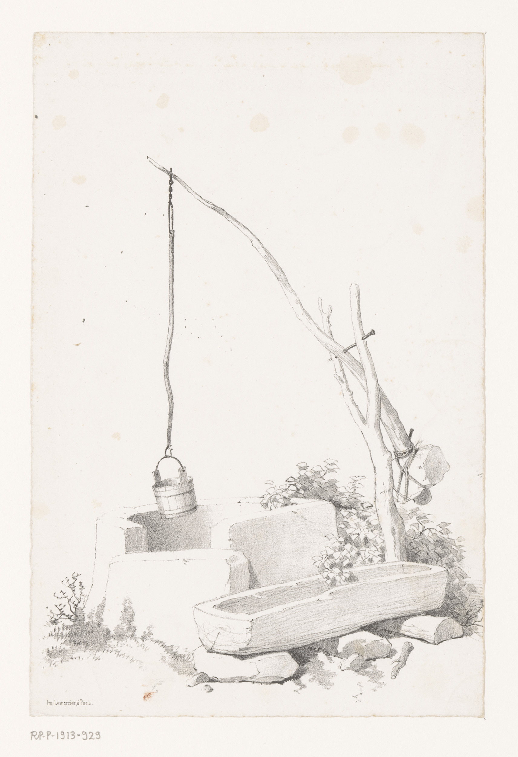 Waterput met emmer en drinkbak