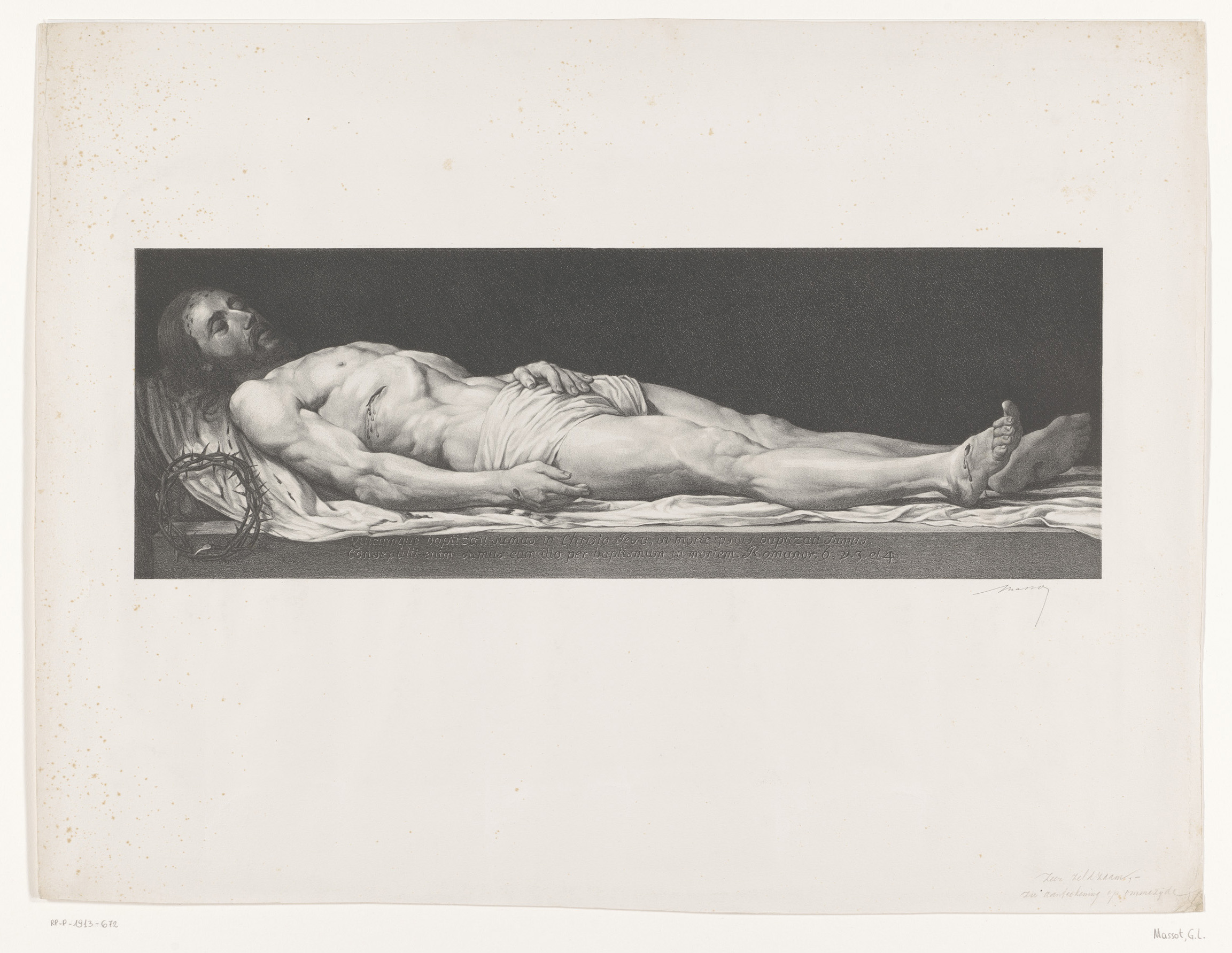 Gestorven Christus liggend op lijkwade