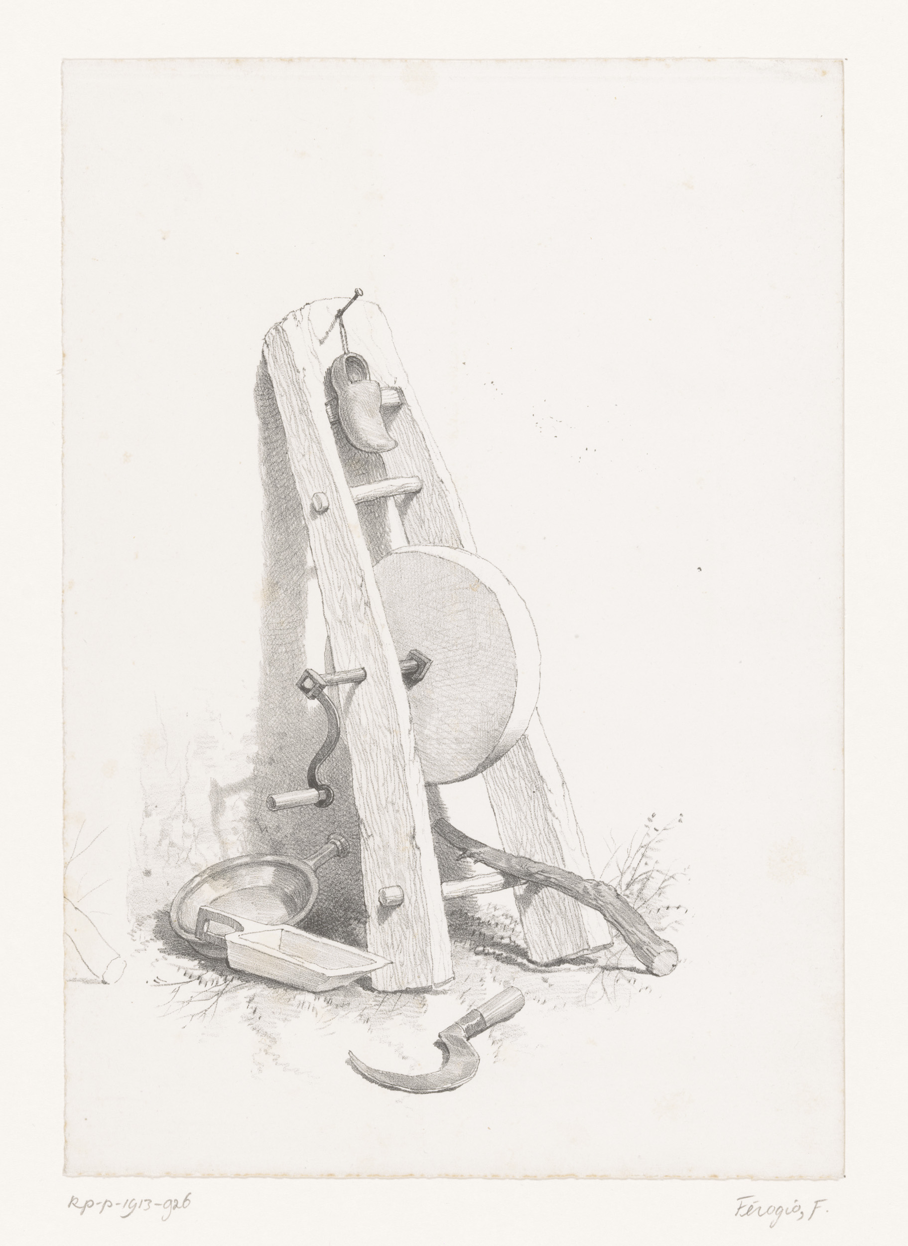 Molensteen met voorwerpen van een boer