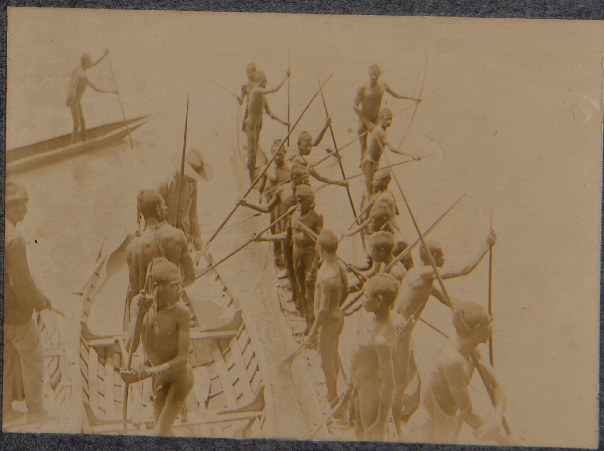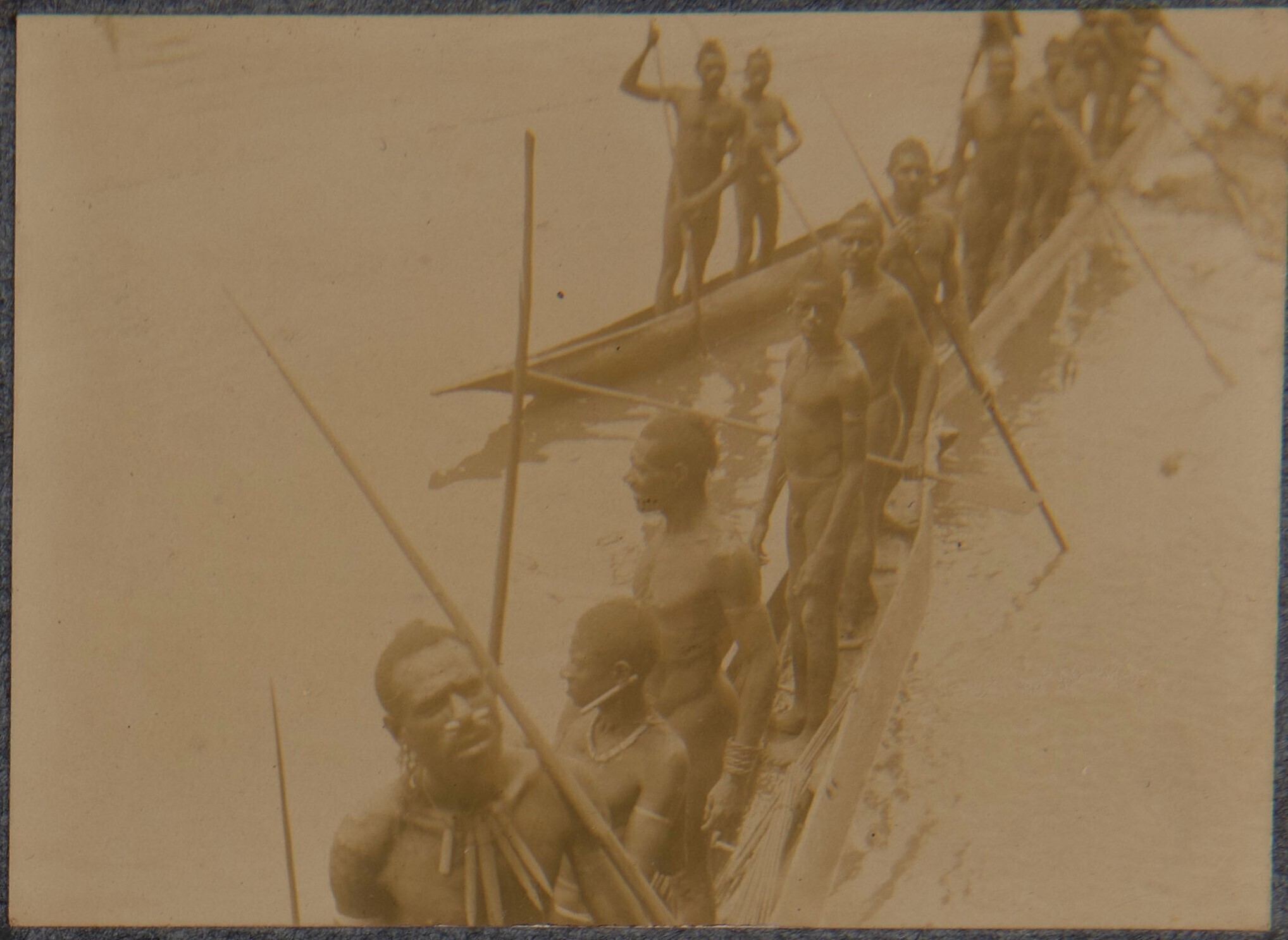 Papuamannen in prauwen bij het Zwaluwbivak aan de Ei...
