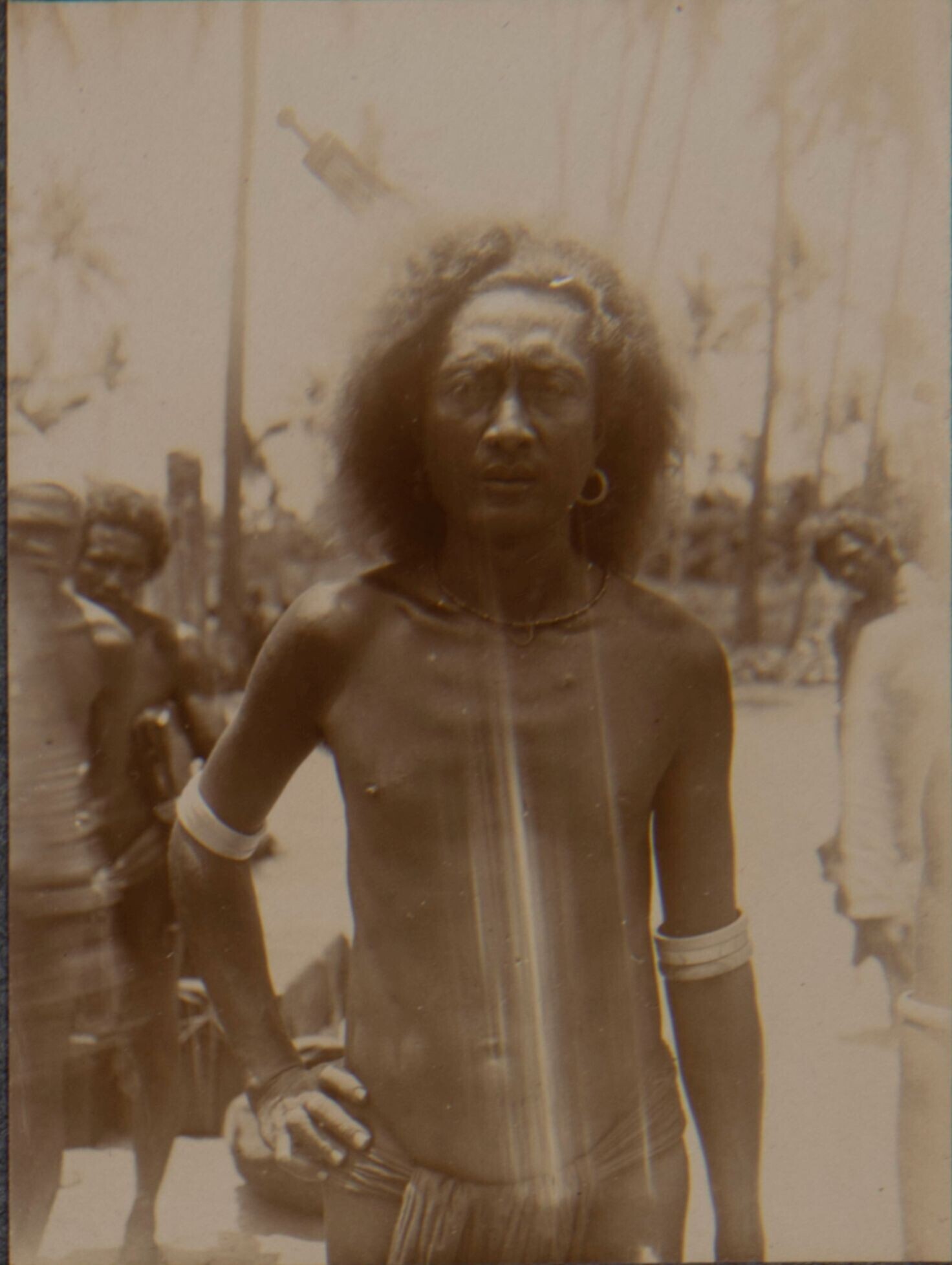 Portret van een Tanimbar man met witte armbanden
