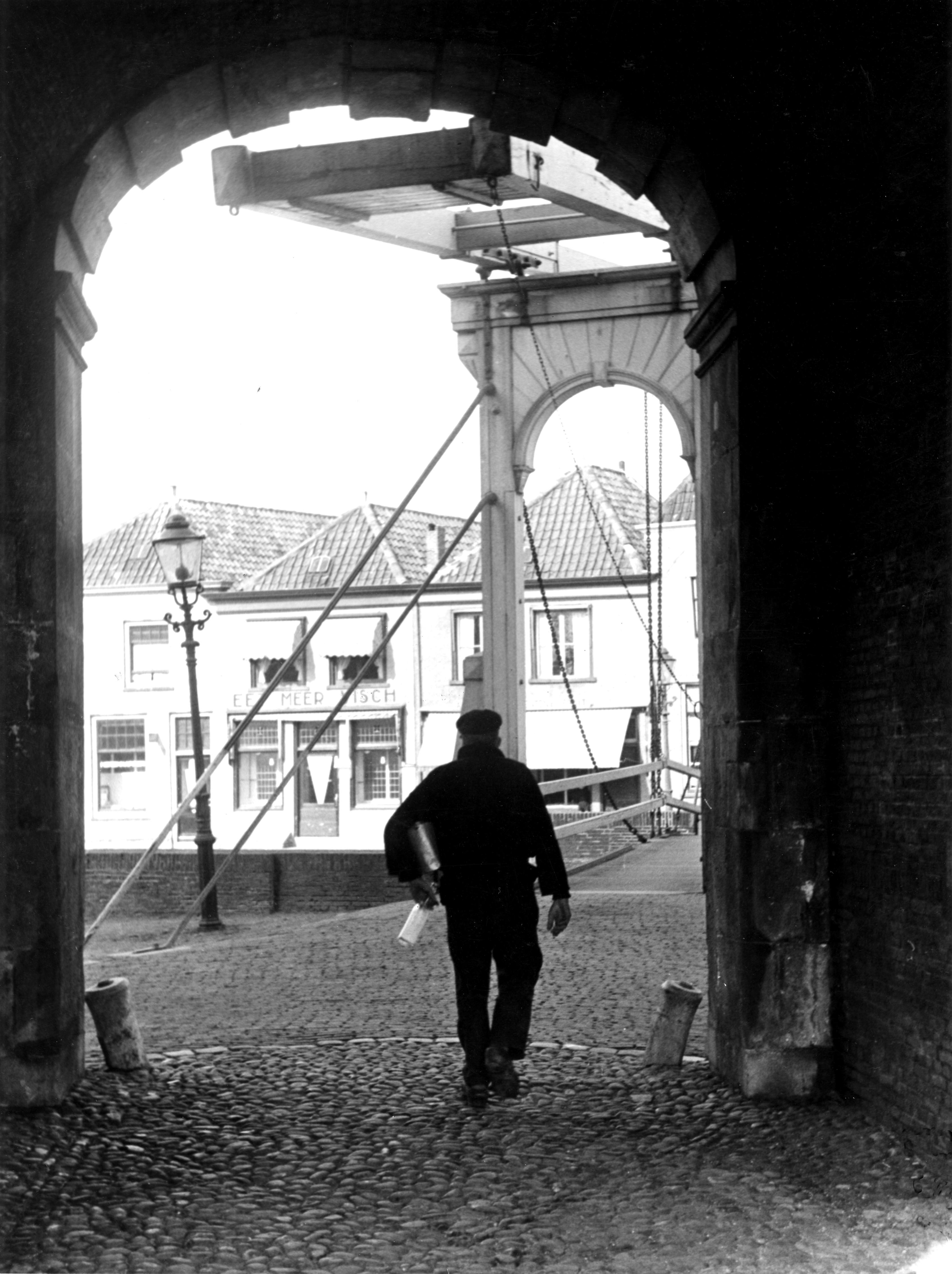 Doorgang onder de Drommedaris, Enkhuizen, 1942 (zwar...