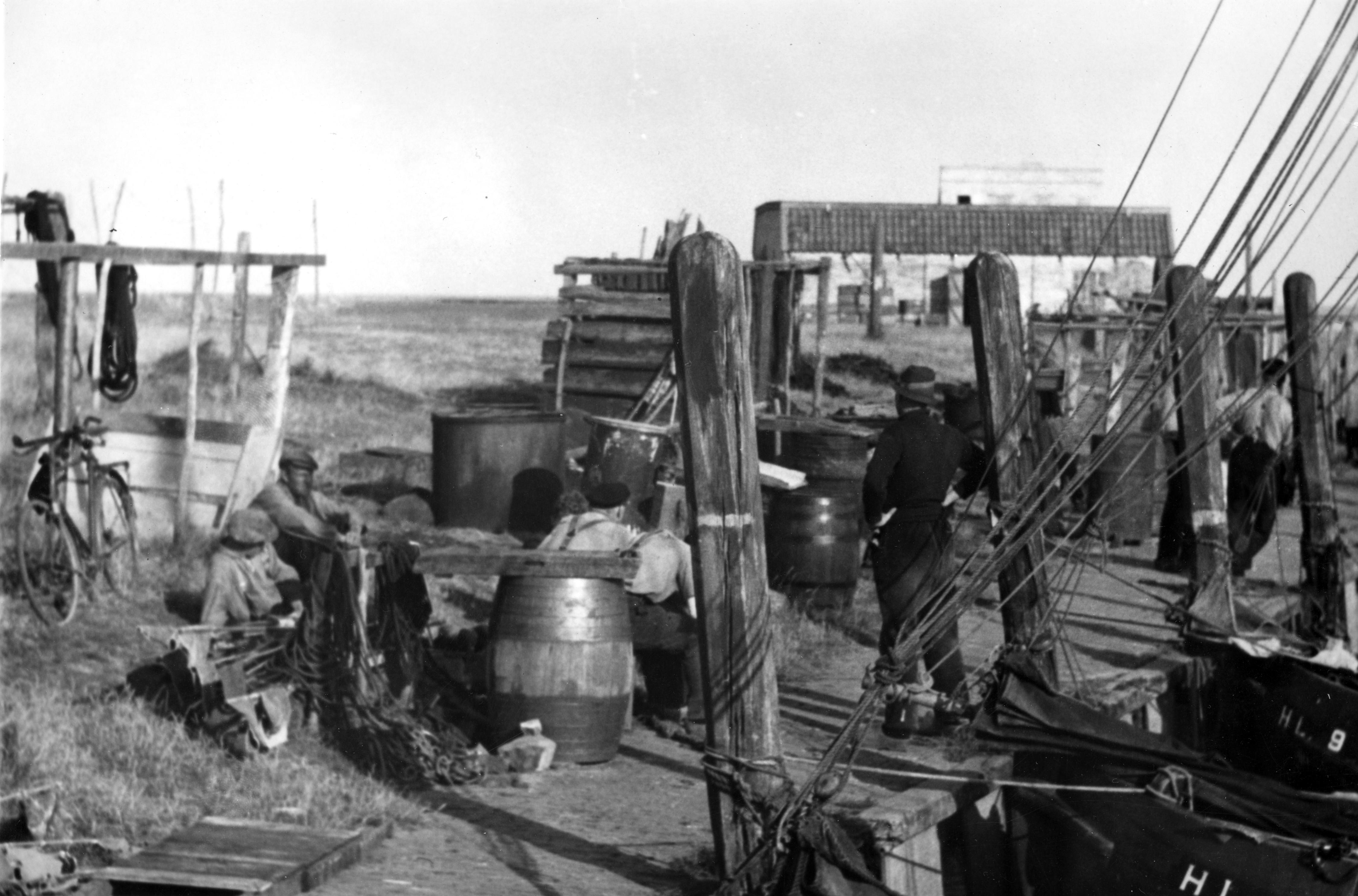 Bedrijvigheid in de haven, Laaxum, 1944 (zwart-wit f...