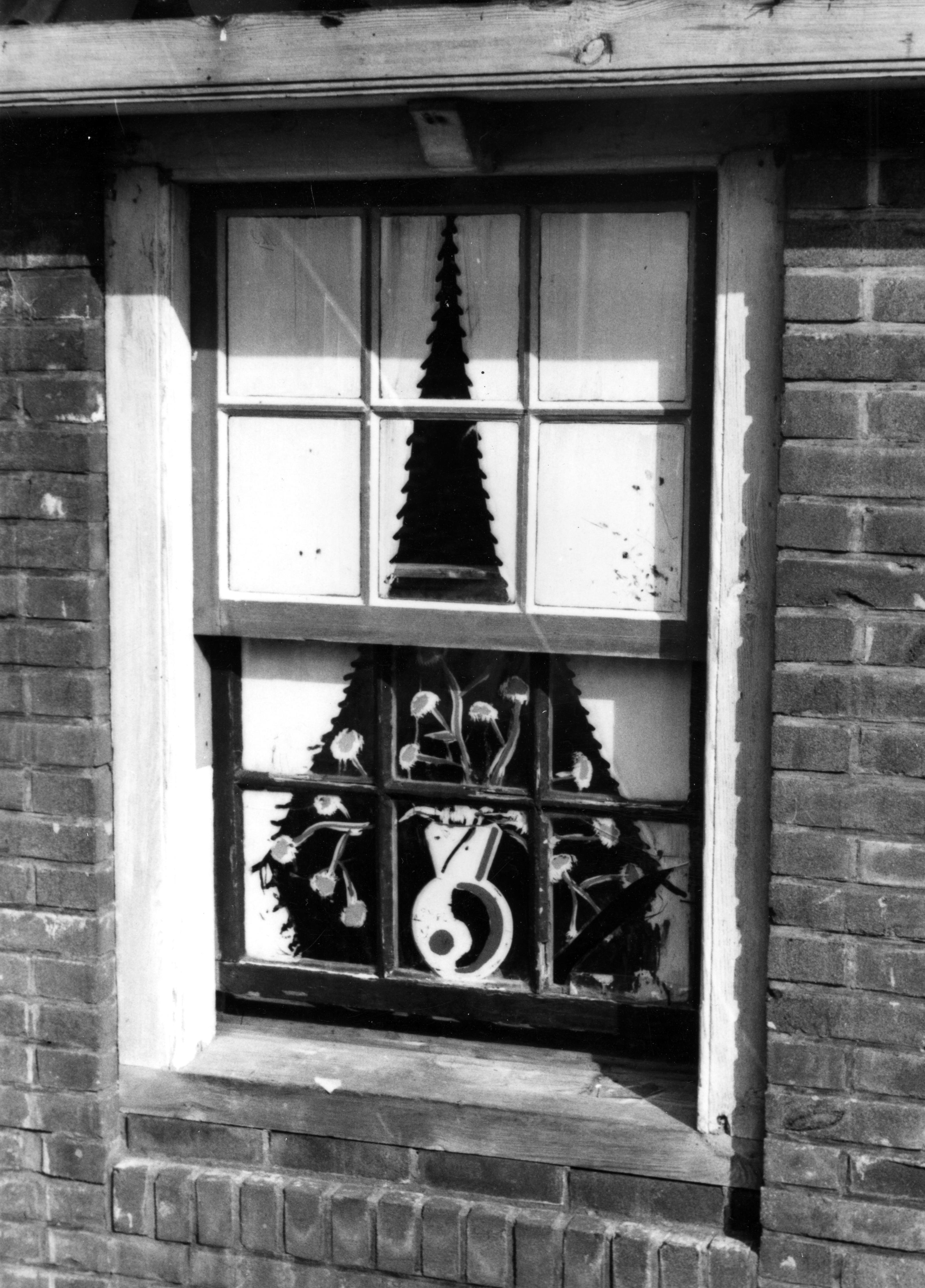 Beschilderd raam, Warns, 1944 (zwart-wit negatief)