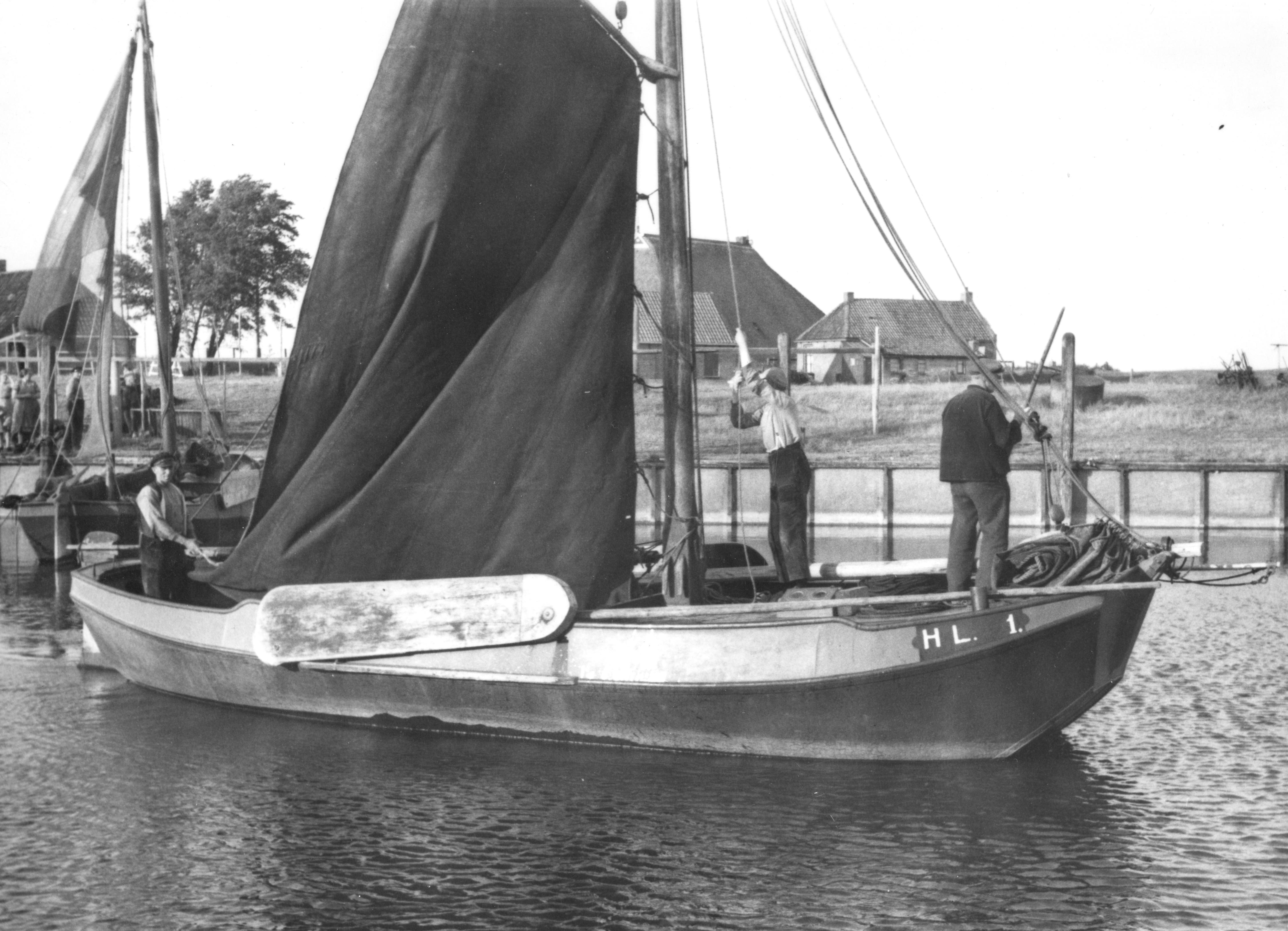 Hindelooper botter bij Laaxum, 1944 (zwart-wit foto)