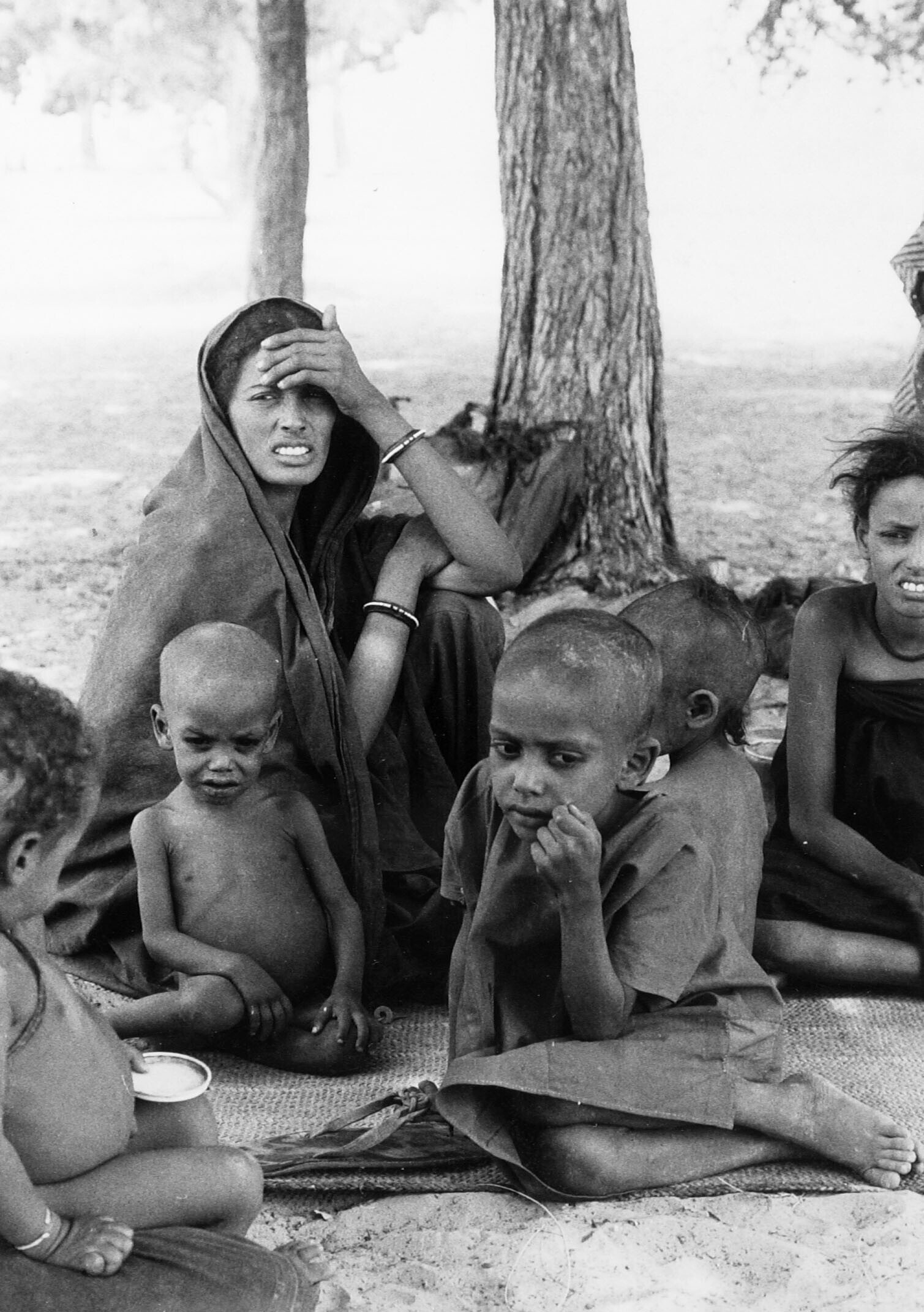 Een Tuareg moeder met kinderen, sterk ondervoed, gev...