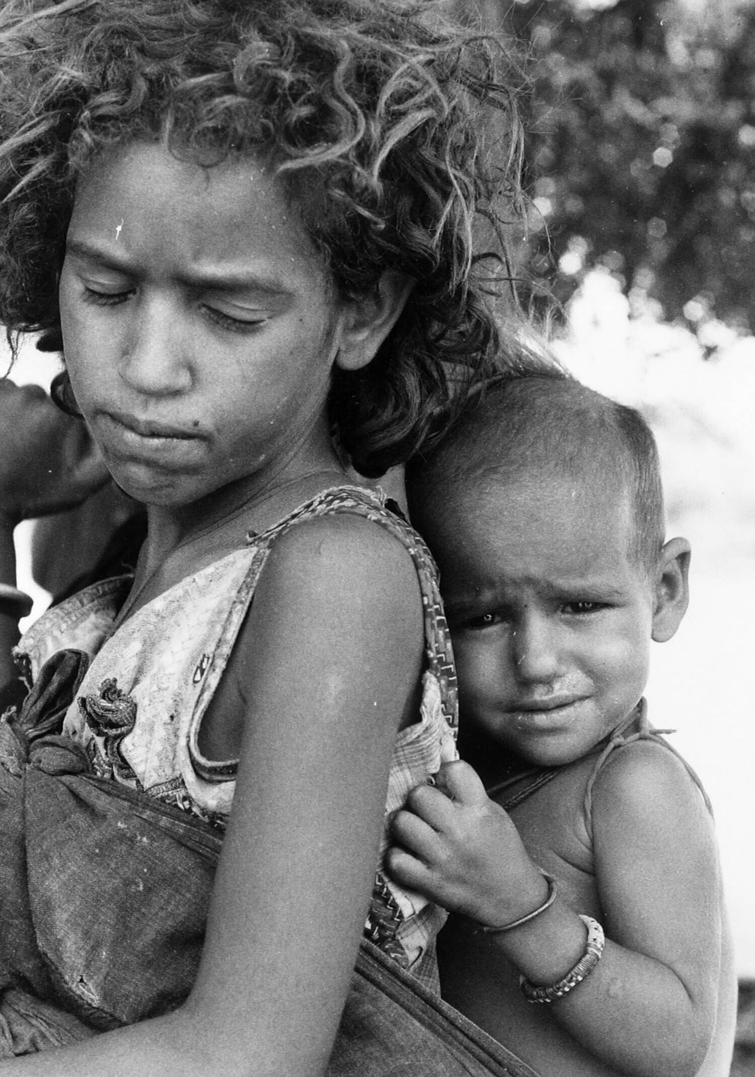 Een Tuareg meisje met haar broertje, gevlucht uit he...