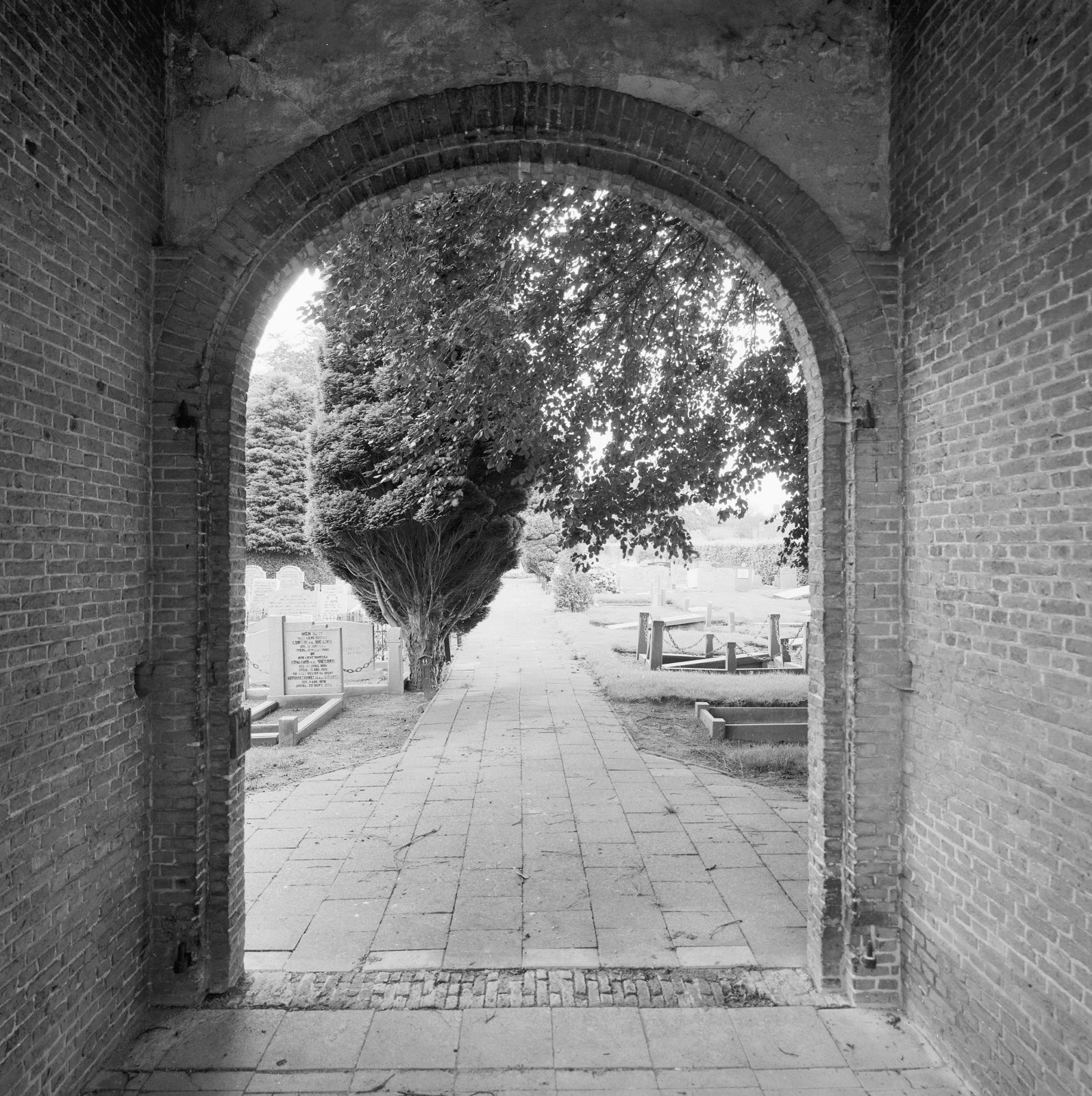 Doorkijk vanuit het poortgebouw naar de begraafplaats