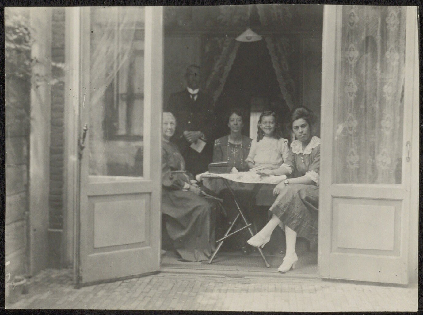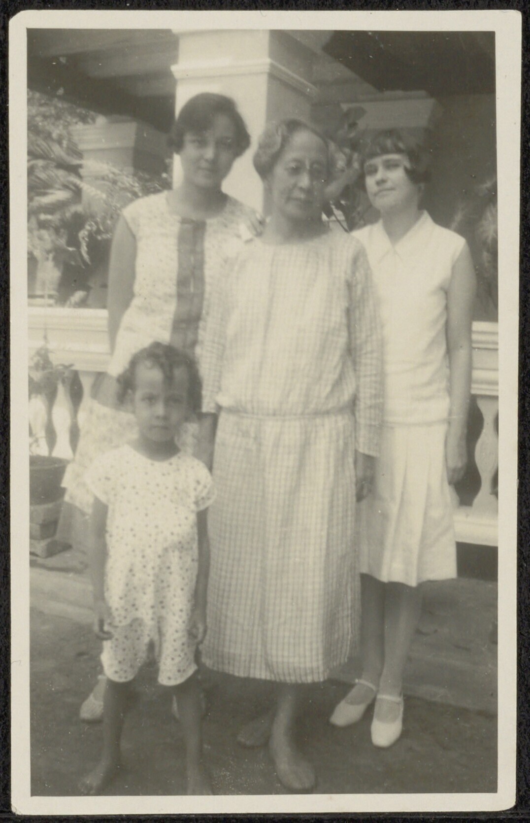 Groepsportret van een oudere dame, twee jonge vrouwe...
