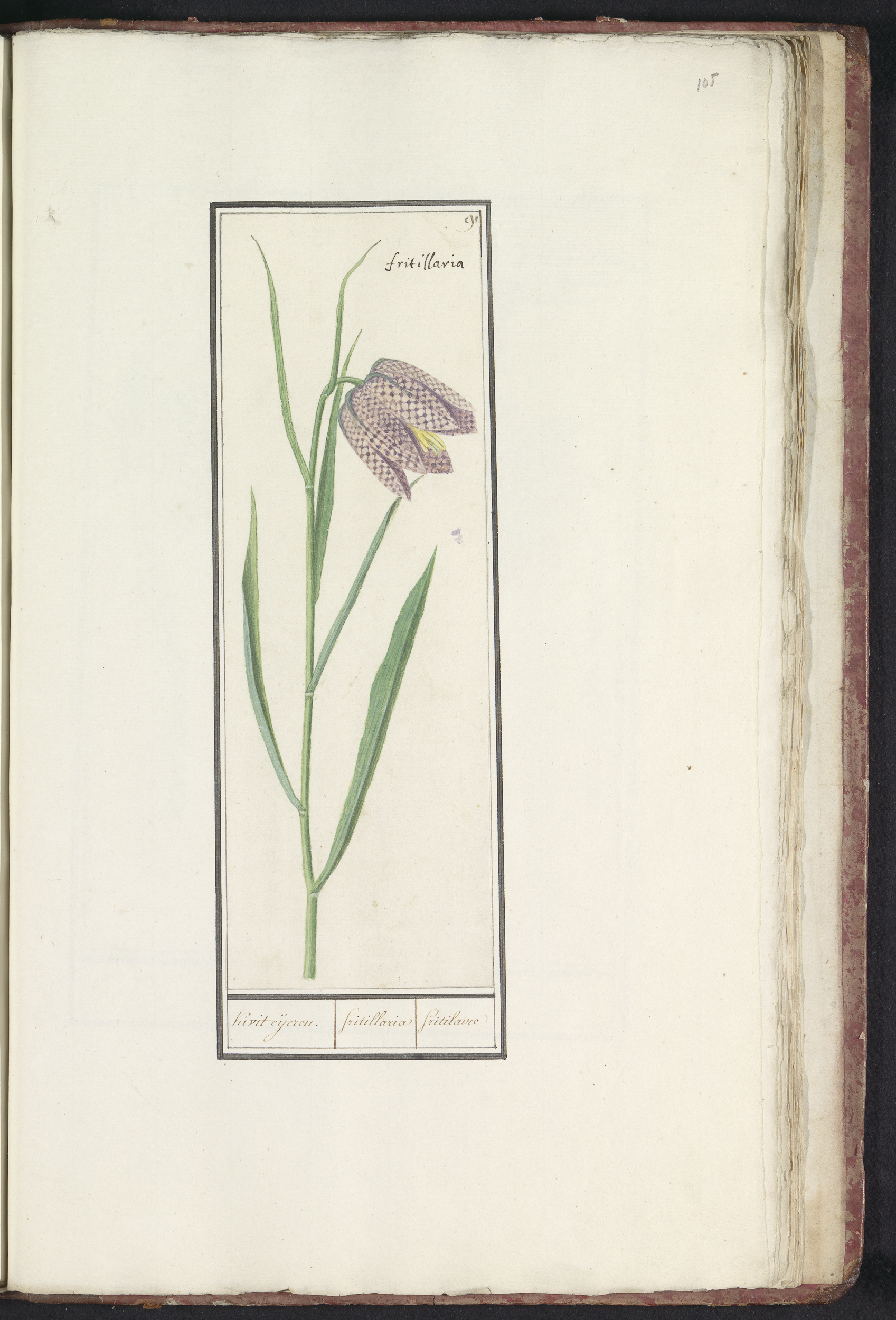 Kievitsbloem (Fritillaria meleagris) en een appel