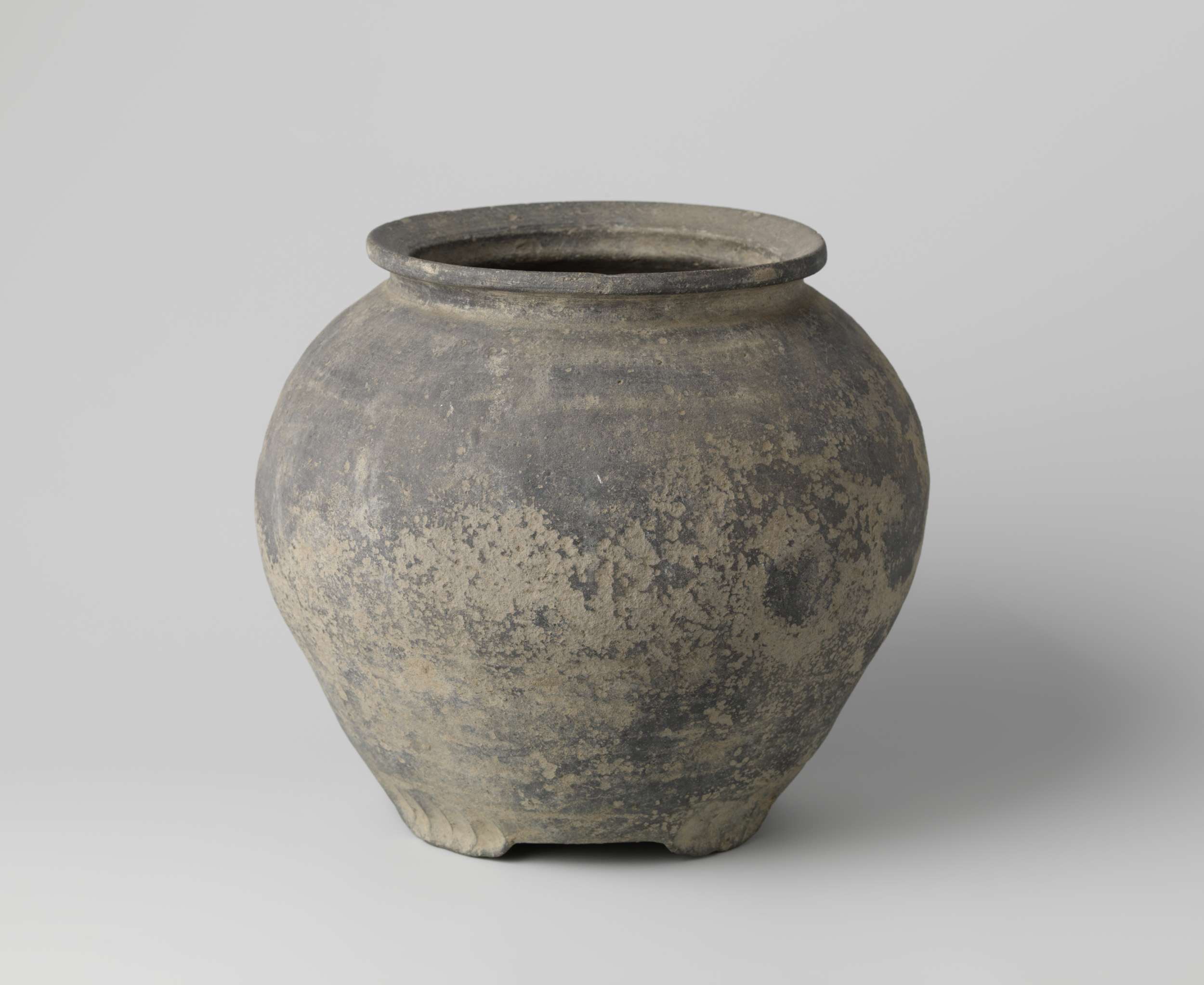Pot en fragment van een pot van grauwe aarde.