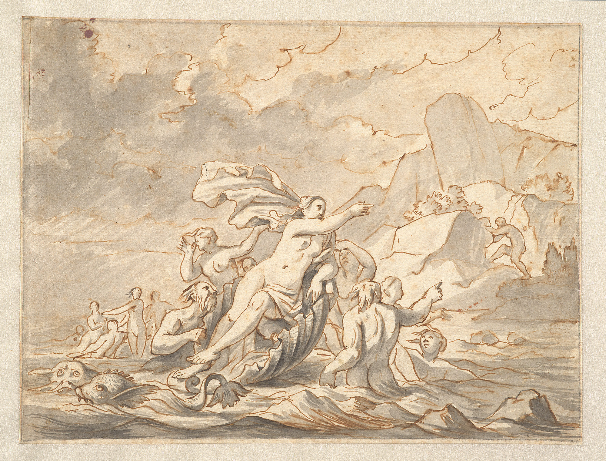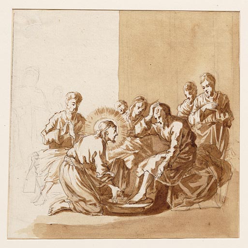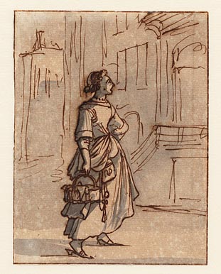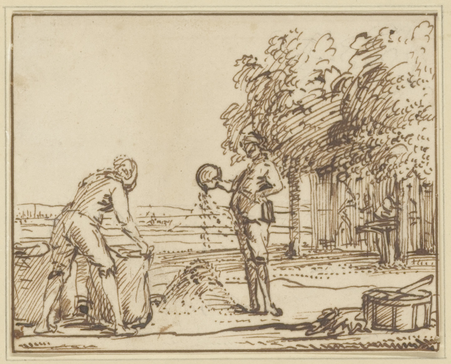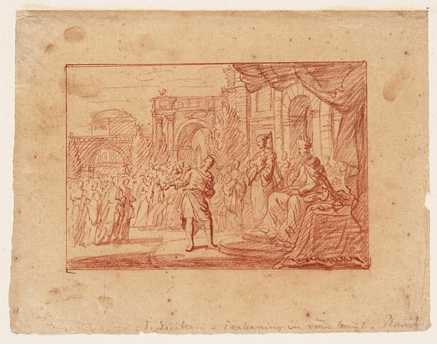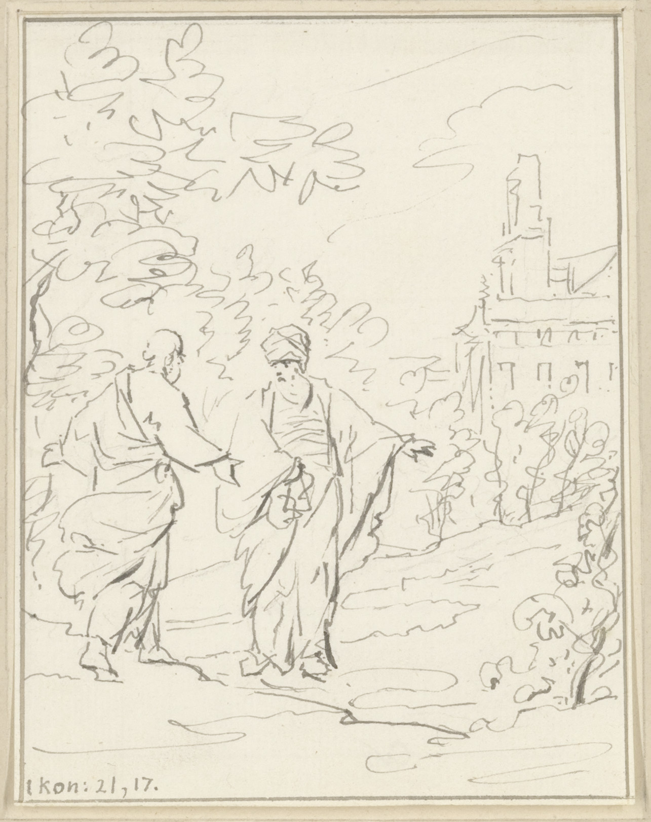 Twee vrouwen in gesprek (Recto). Restant van een kos...