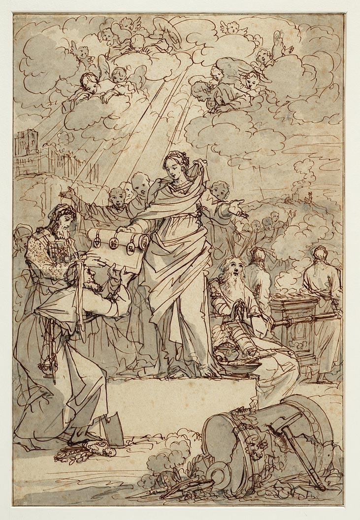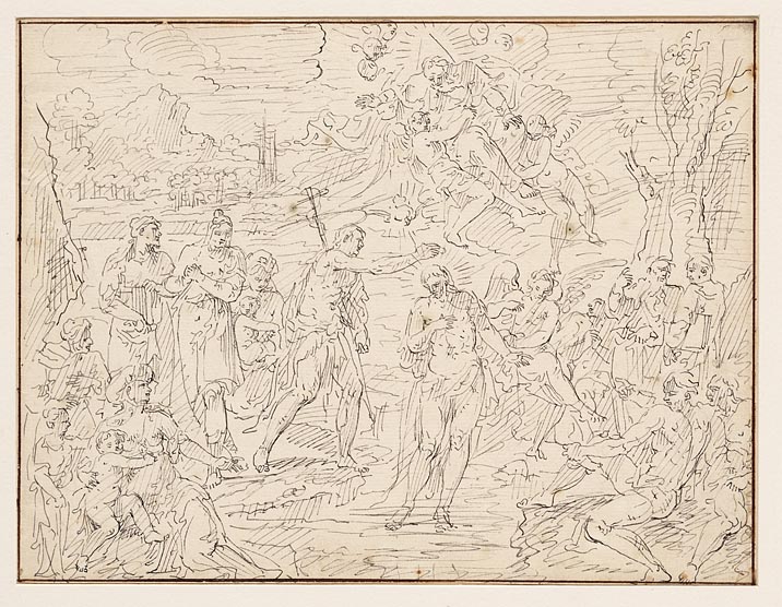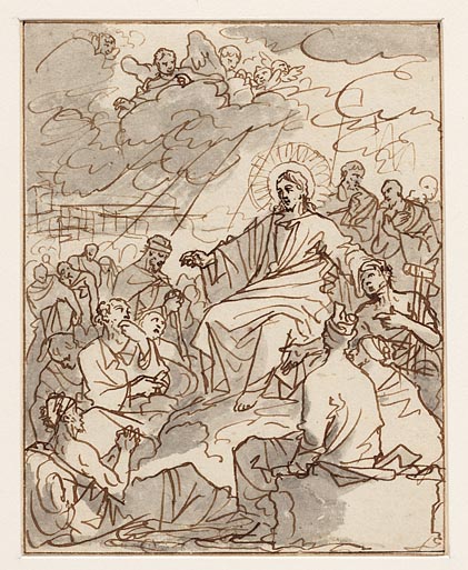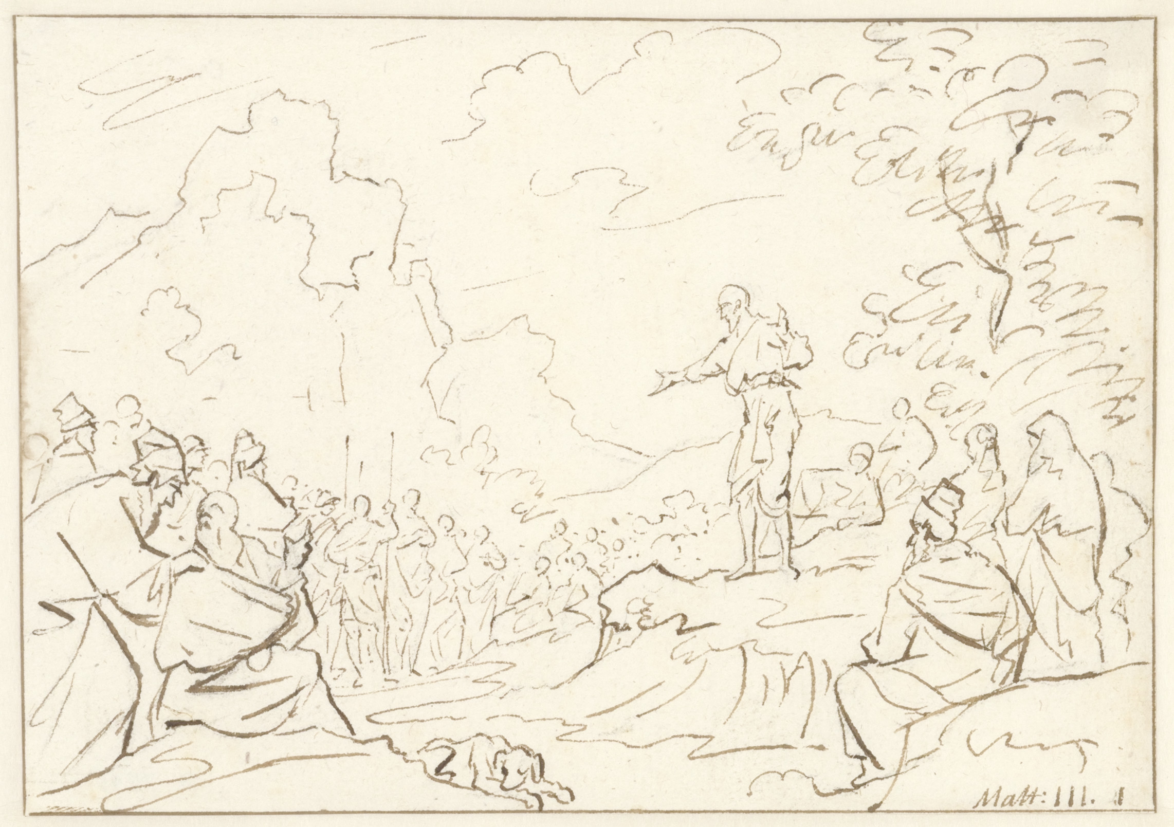 De evangelist Matteüs (recto) Gravure met de apostel...