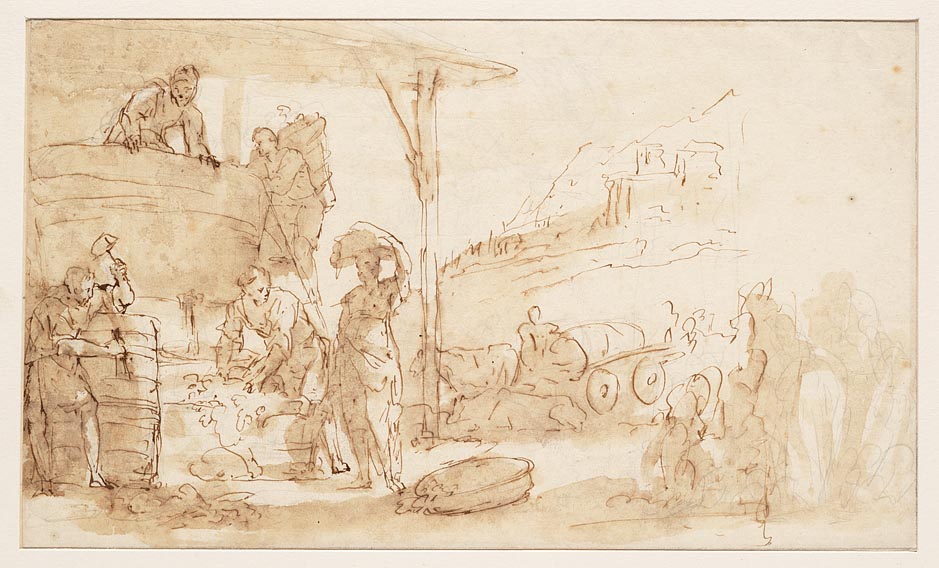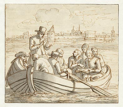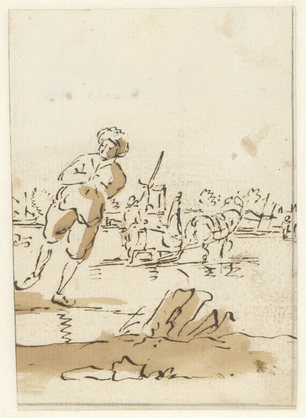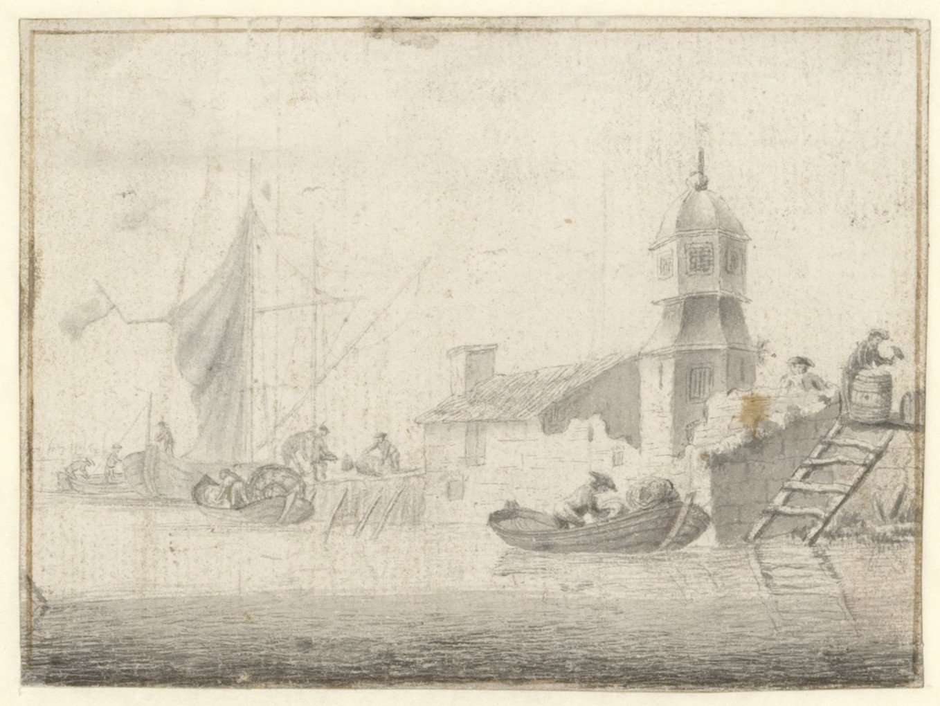 Vissersboten bij een haven 3de kwart 18de eeuw