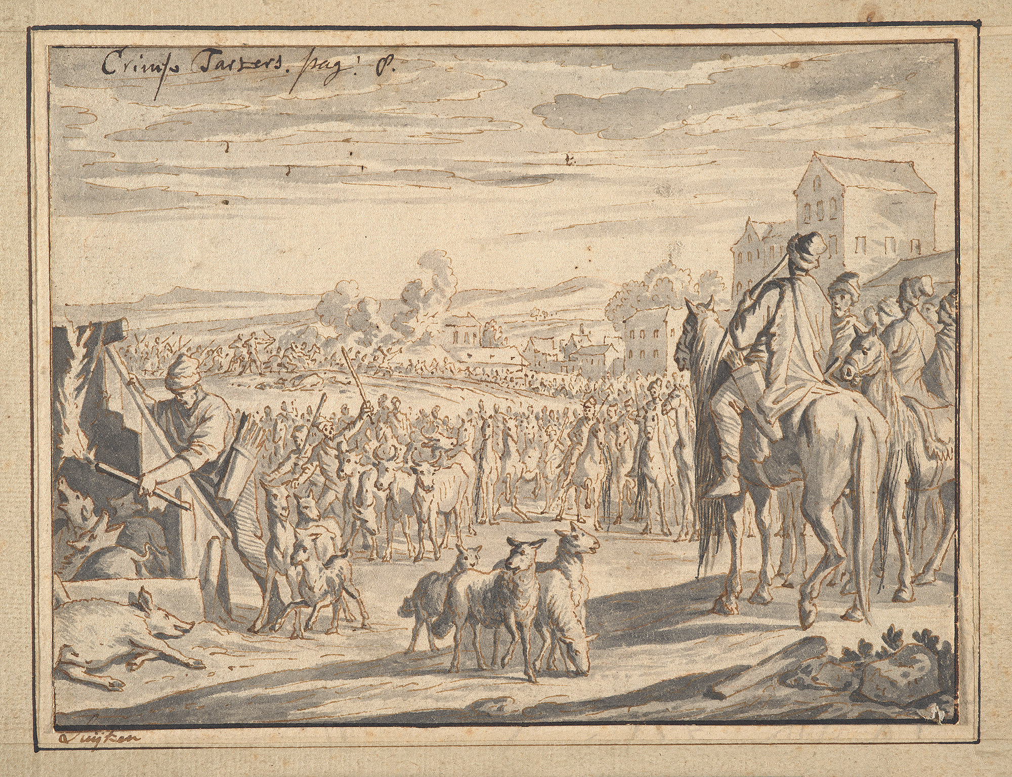 Een Turkse vorst met gedode gevangenen en aan bomen ...