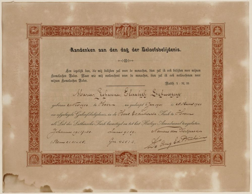 PDM 1.0 DEED / Public Domain Mark 1.0 Universal<br>Van dit werk is vastgesteld dat er geen bekende auteursrechtelijke beperkingen op rusten, alle aanverwante en naburige rechten daarbij inbegrepen. Bij gebruik van de afbeelding graag vermelden: Collectie M (598)