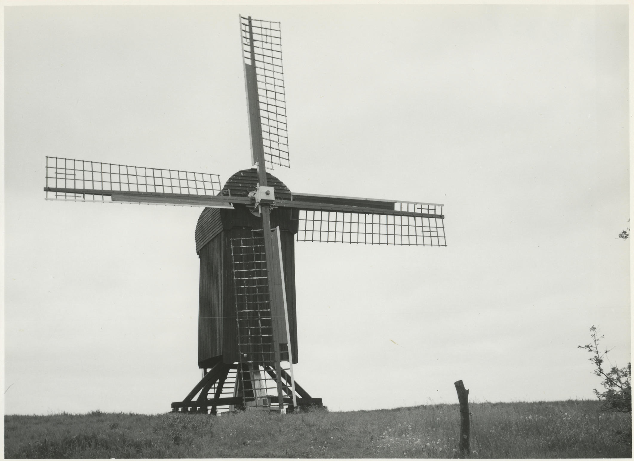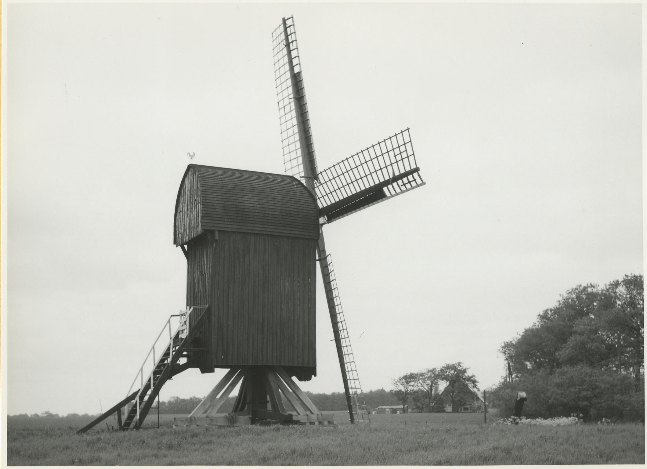 Open standerdmolen, Ter Haar, 1965 (zwart-wit foto)