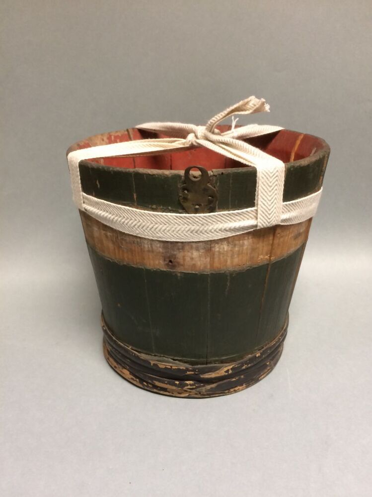 Houten emmertje van binnen rood en van buiten groen