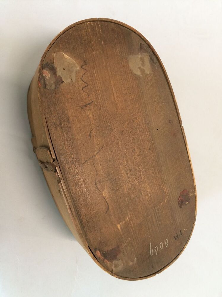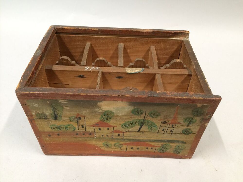 Beschilderde houten doos met schuifdeksel, waarin ve...