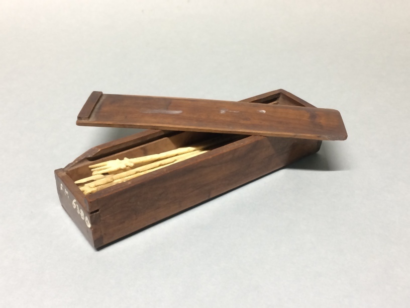 Kartonnen doosje met uit hout gesneden soldatenkopje...
