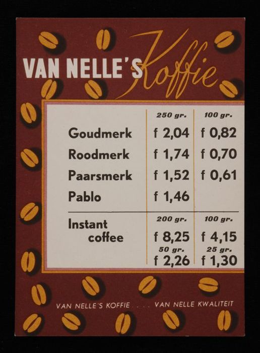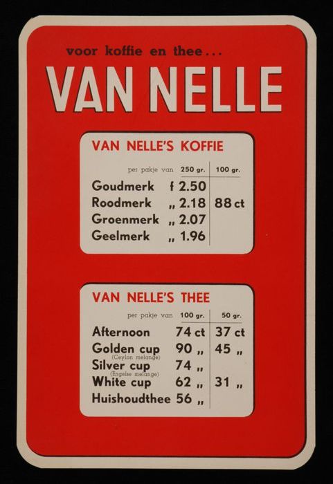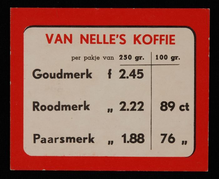 Kleine prijslijst Van Nelle's koffie met rondom koff...