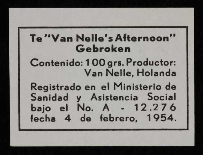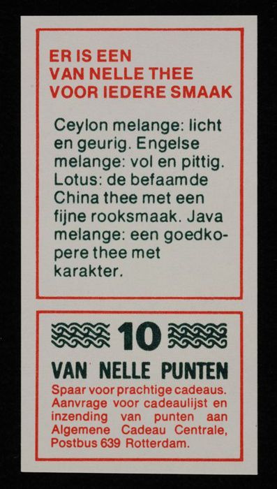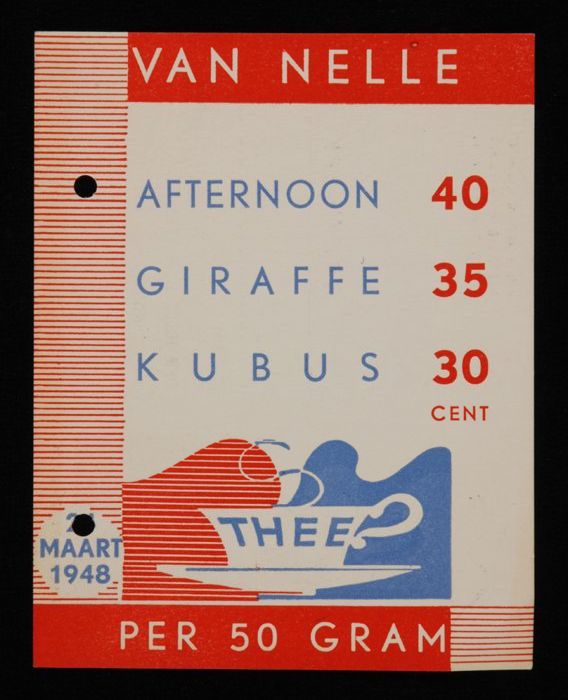 Kleine prijslijst Van Nelle's thee, met halve kop th...