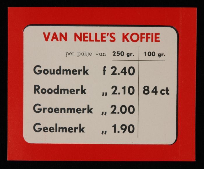 Kleine prijslijst met prijzen Van Nelle's koffie, ro...