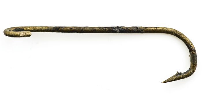 Metalen vishaak, omgebogen lus als bevestigingsoog, ...
