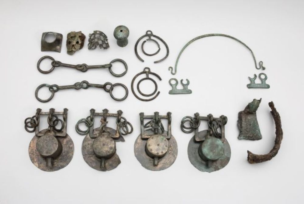 Delen van paardentuig van brons en ijzer, uit de mid...