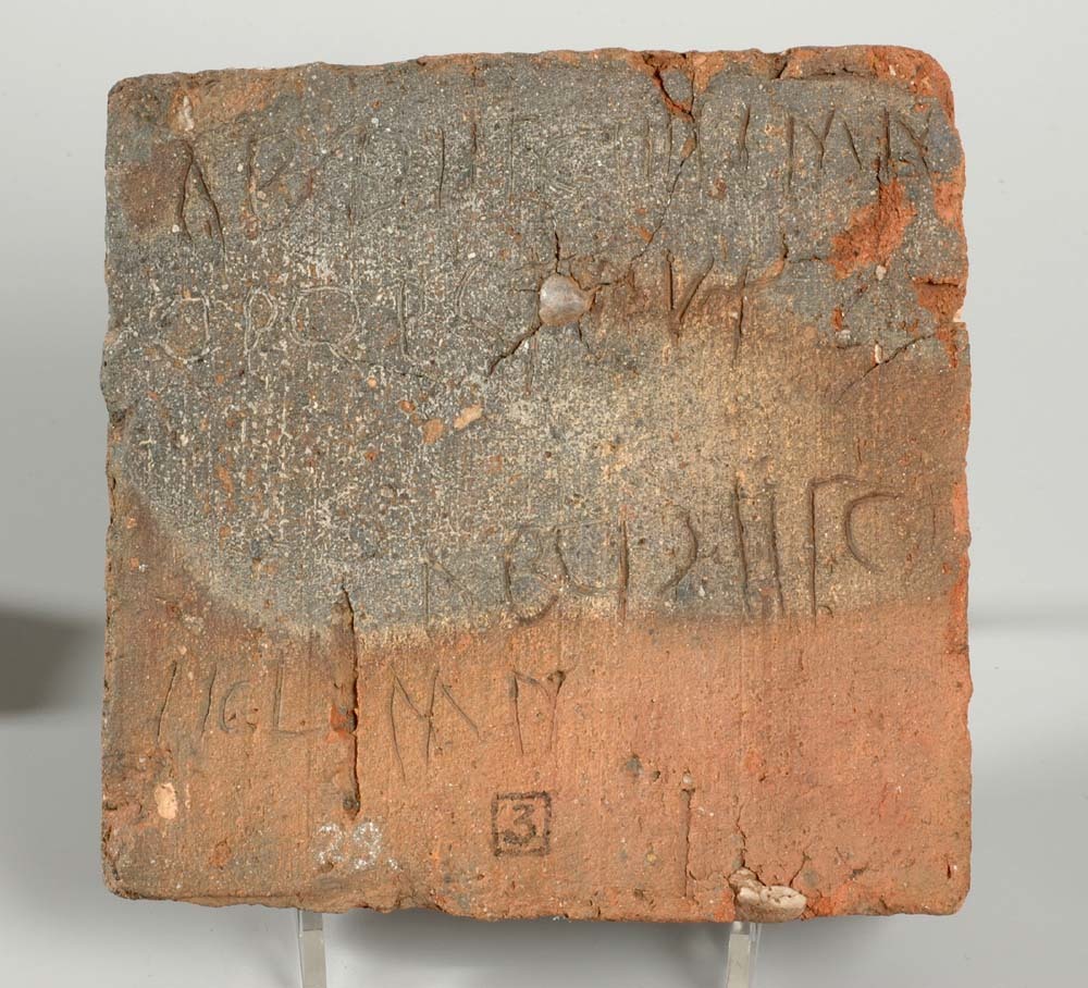 Baksteen met ingekrast alfabet uit de midden Romeins...
