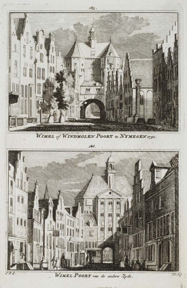 Gezicht op het Valkhof en huizen langs Lindenberg en...