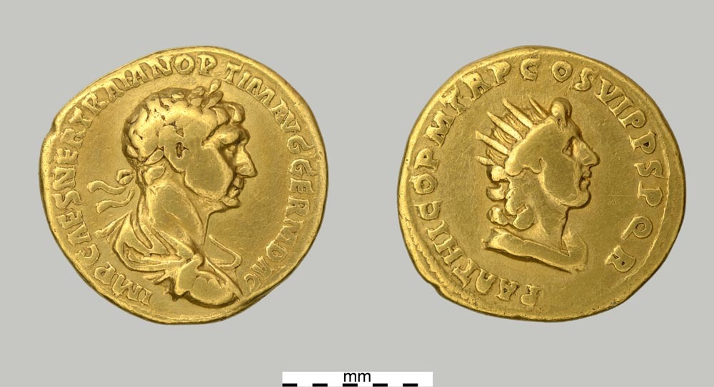 Aureus van Trajanus, munt van goud uit de Romeinse tijd