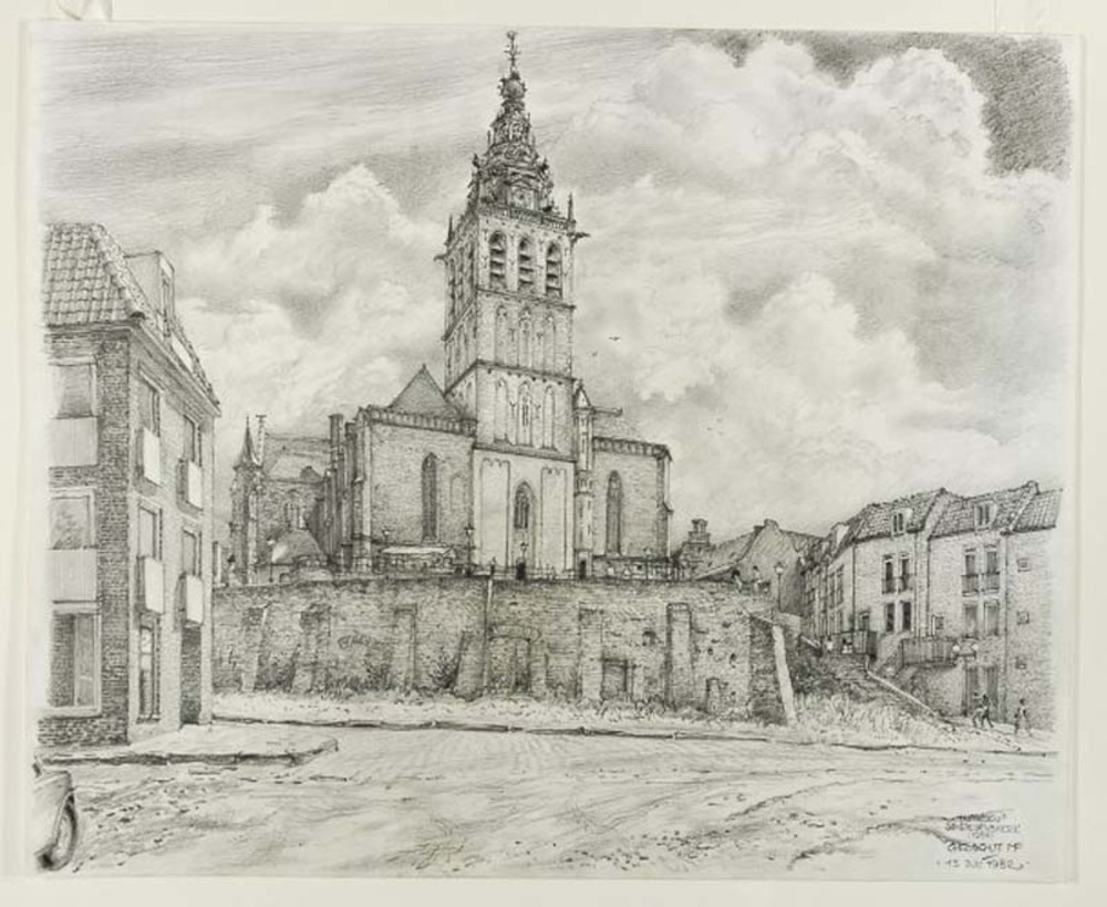 Gezicht op Stevenskerk vanaf de Ganzenheuvel