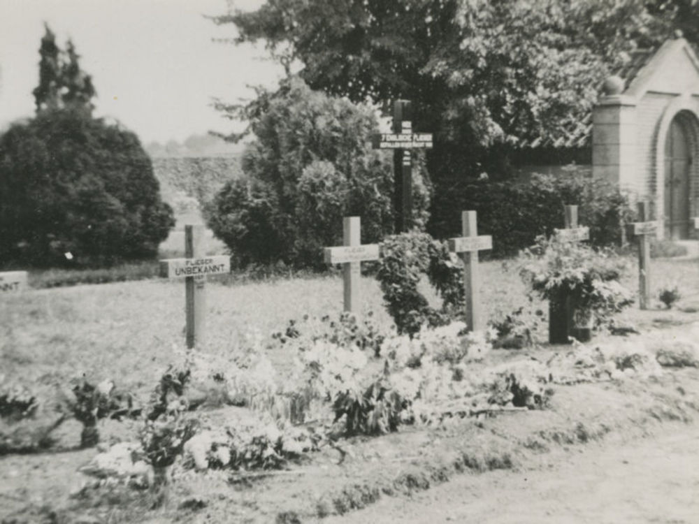 Foto van begraafplaats met kruisen "Flieger unbekann...