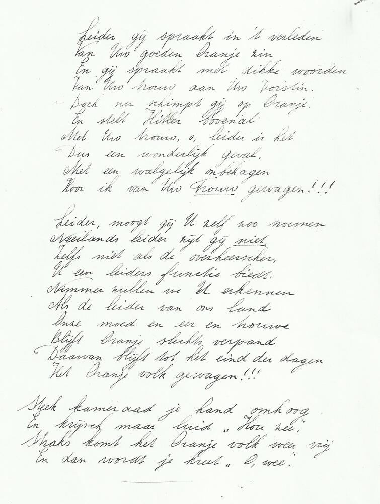 "Moed eer en trouw" (gedicht, handgeschreven)