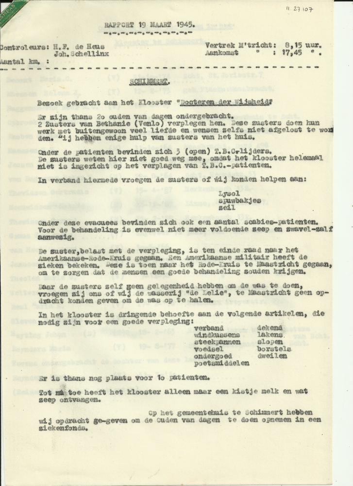 Rapport 19 maart 1945 en bezoek Schimmert door J. Sc...