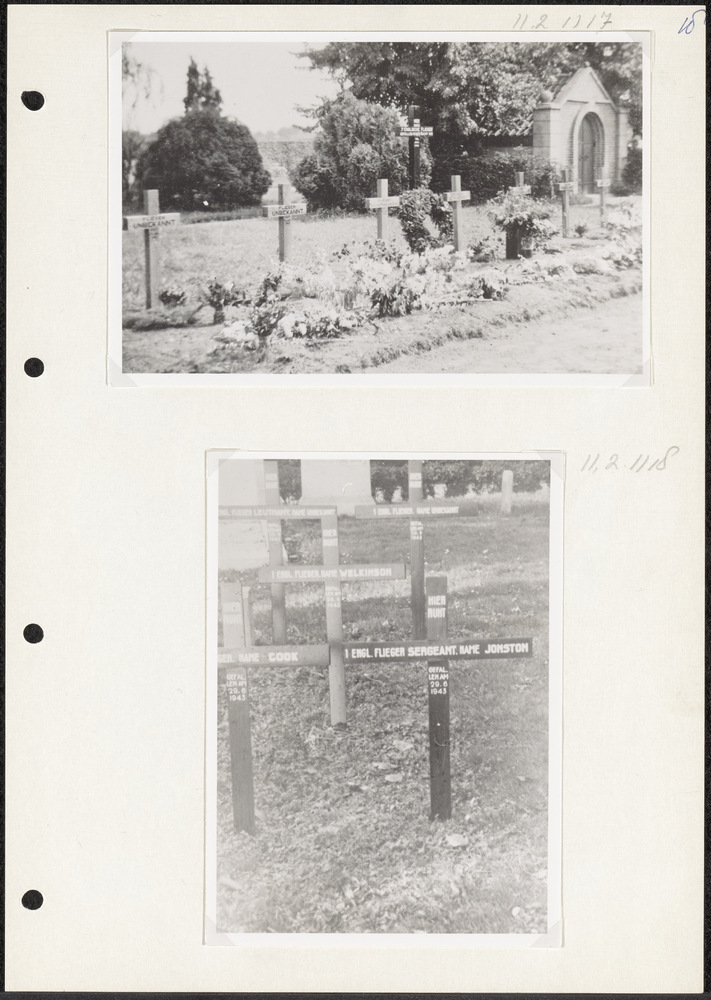Foto van begraafplaats met kruisen "Flieger unbekann...