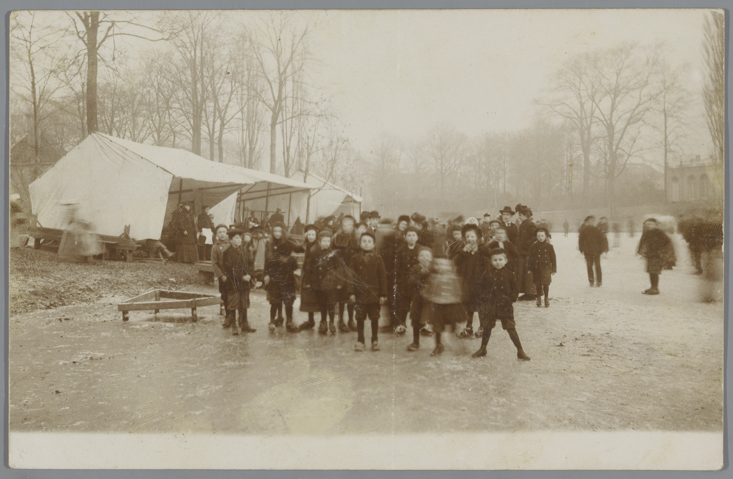 Kinderen op schaatsen voor een koek- en zopietent