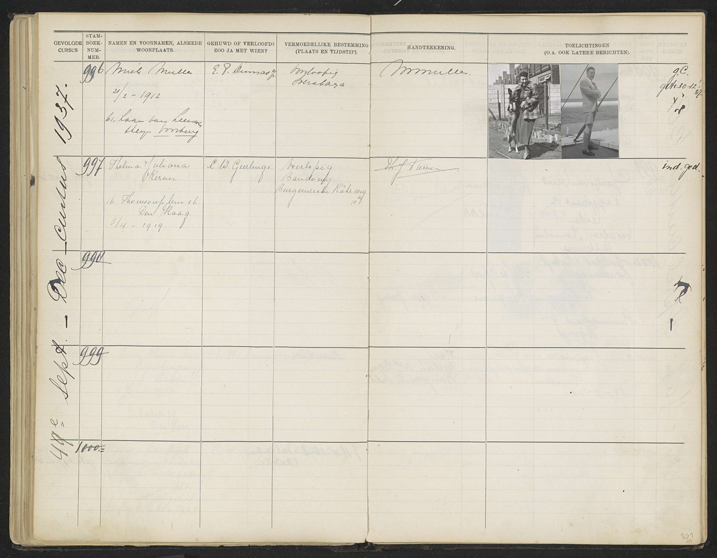 Blad 99 uit Stamboek van de leerlingen der Koloniale...