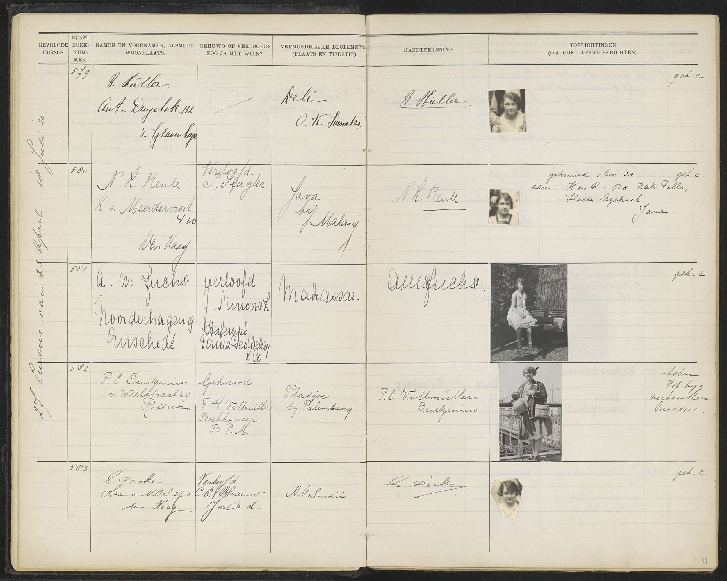 Blad 11 uit Stamboek van de leerlingen der Koloniale...