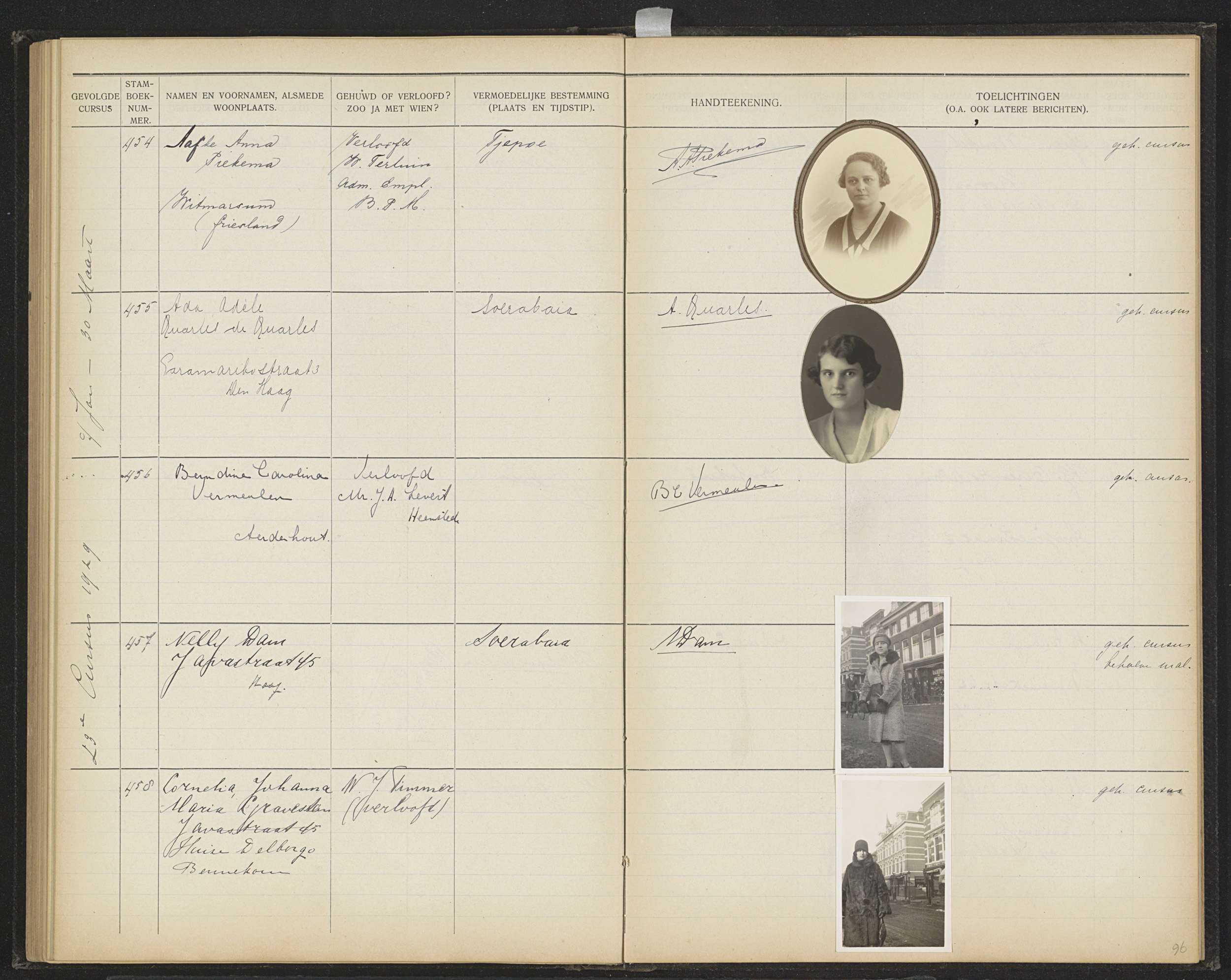 Blad 96 uit Stamboek van de leerlingen der Koloniale...